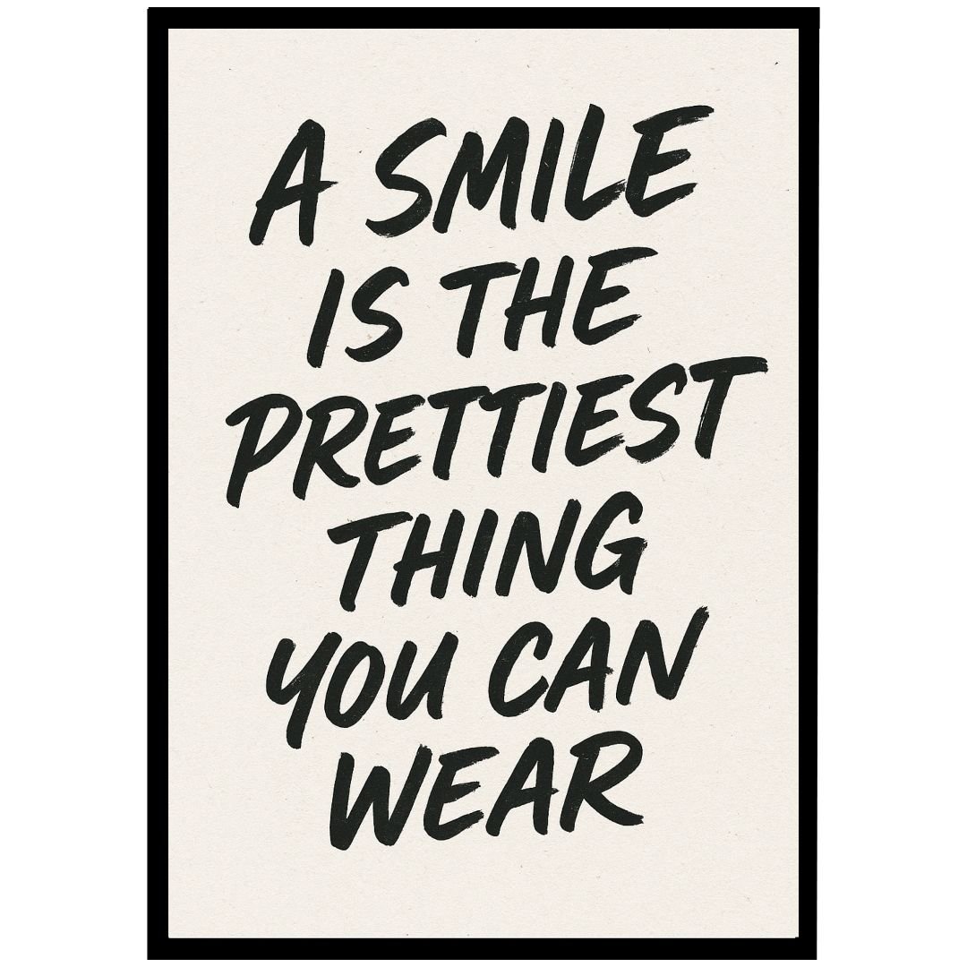 A beautifully uplifting typography print featuring the phrase “A Smile Is the Prettiest Thing You Can Wear” in bold handwritten lettering. Perfect for dressing rooms, bedrooms, beauty spaces, and minimalist interiors. Printed on premium matte paper for a clean and modern finish.