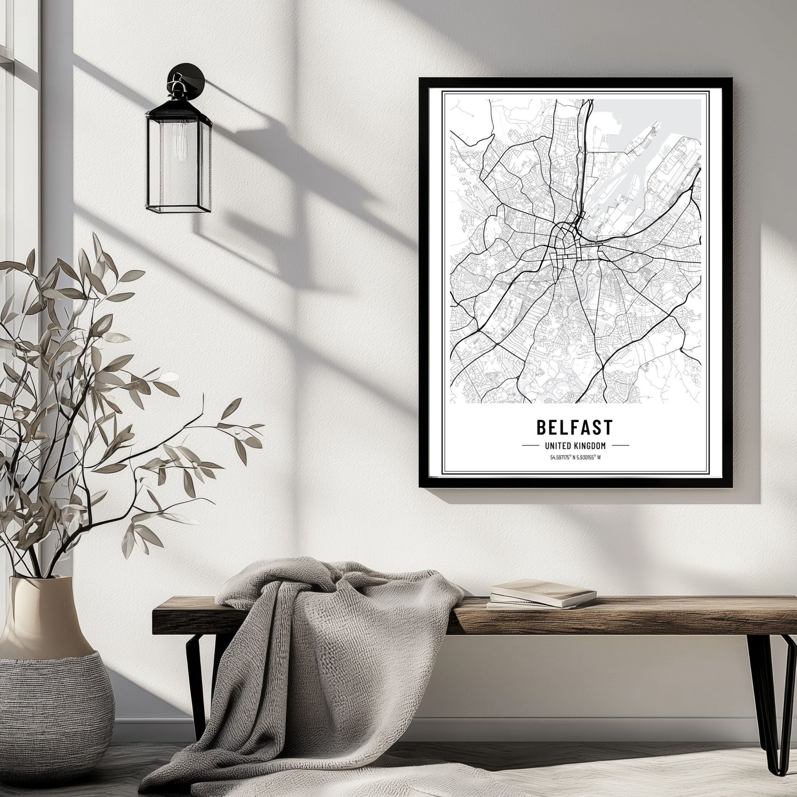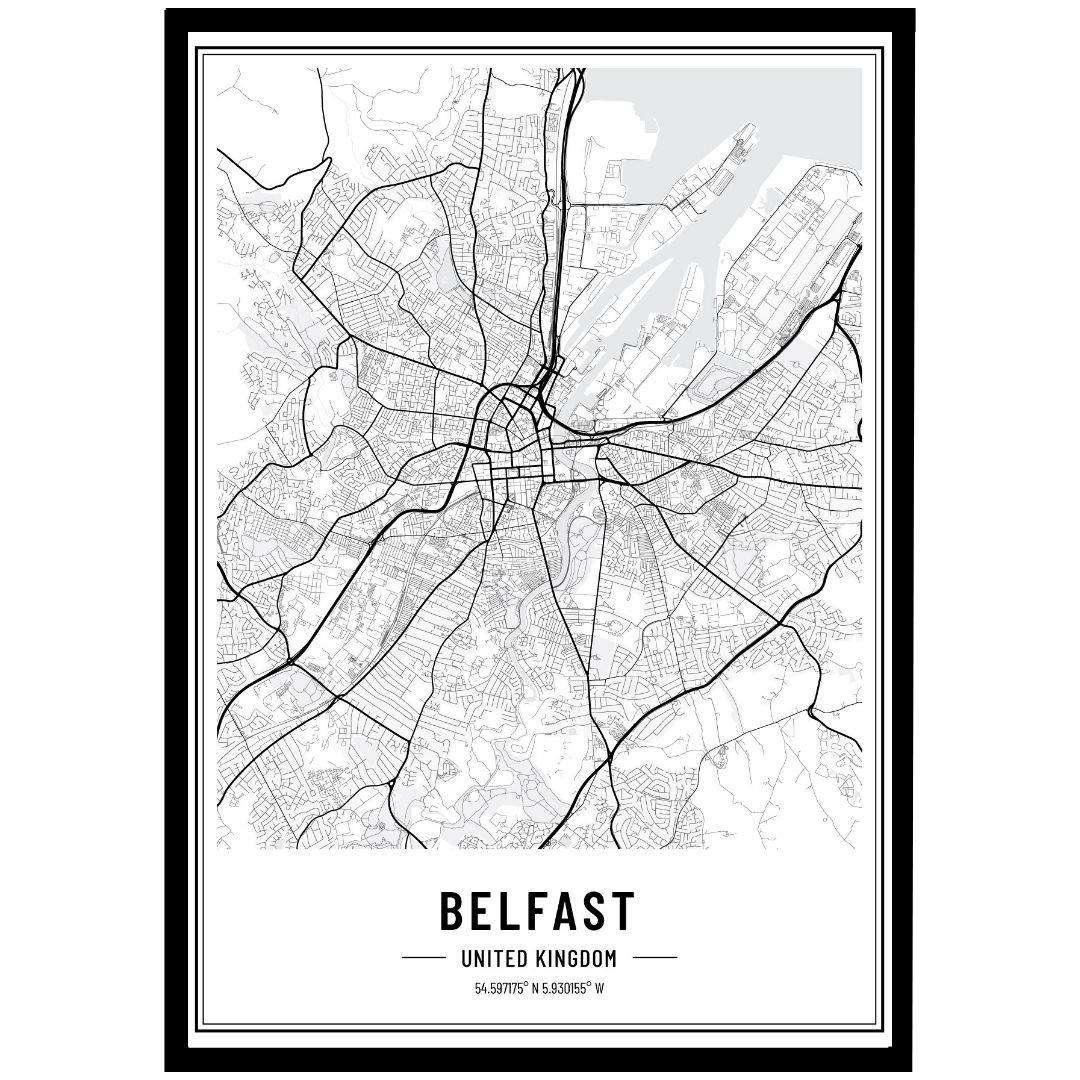 Capture the heart of Northern Ireland’s capital with this black and white map of Belfast, a beautifully detailed print that celebrates the city’s streets, landmarks, and layout in timeless monochrome style. The clean black and white design blends effortlessly into any space, from minimalist apartments to cosy homes filled with stories.