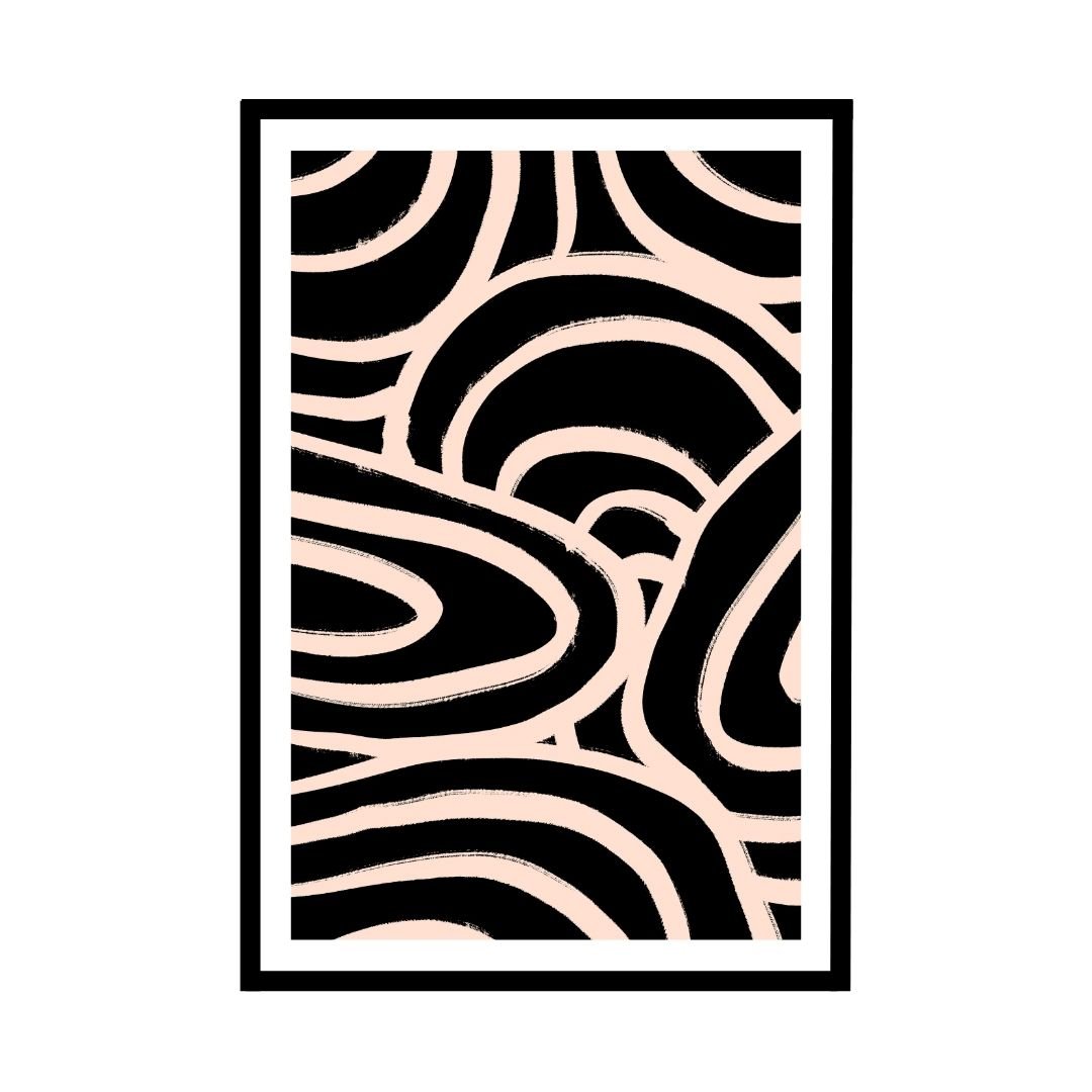 This modern art piece features bold black wavy lines on a soft peach background. It combines minimalist and contemporary styles, making it an ideal wall decor for modern living rooms, offices, or creative spaces.