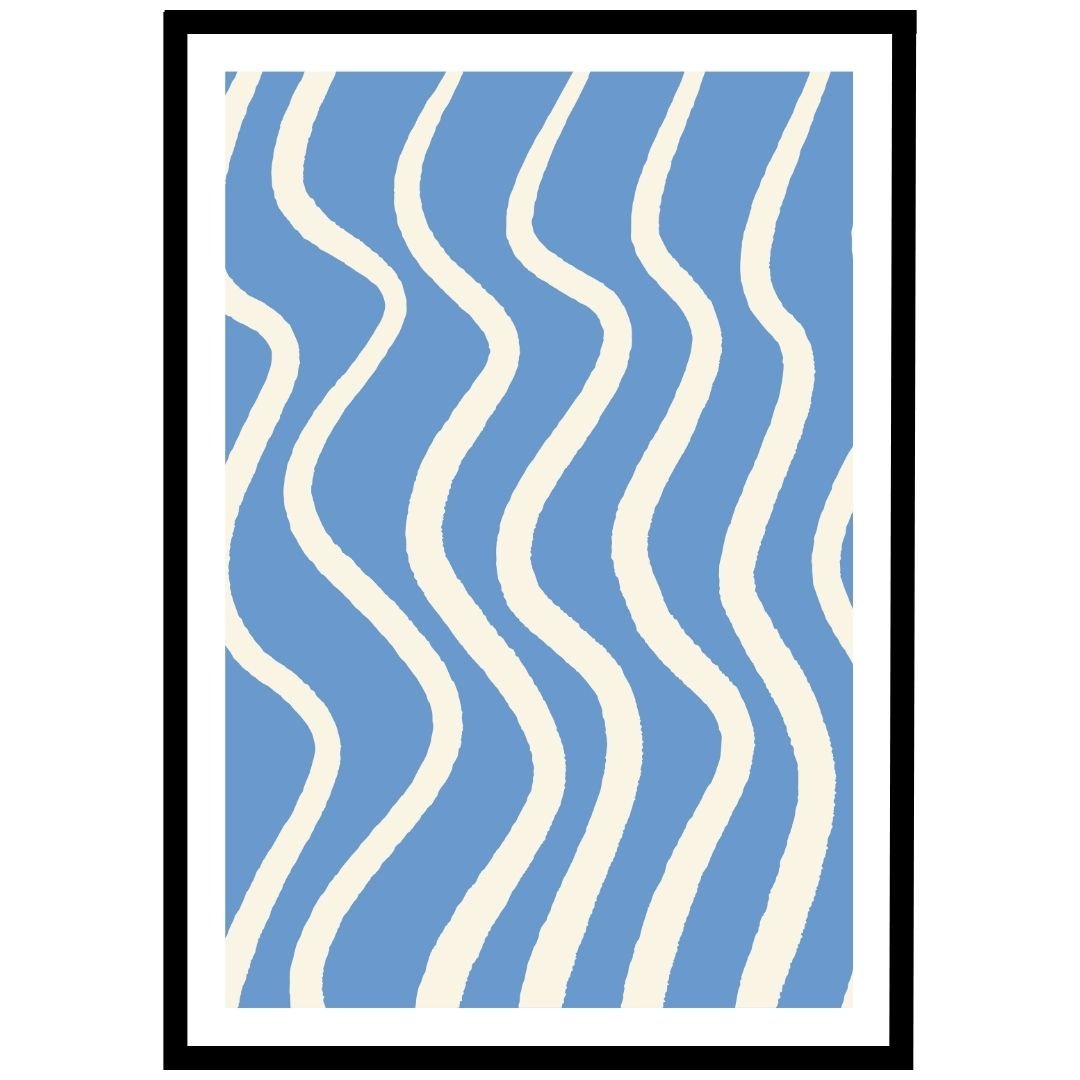 Shop this modern abstract wall art print featuring flowing wavy white lines over a soft blue background. The rhythmic wave pattern evokes a sense of movement and serenity, making it a perfect piece for living rooms, bedrooms, or offices. Printed on premium-quality paper, this minimalist artwork blends seamlessly with Scandinavian, coastal, and contemporary interiors.