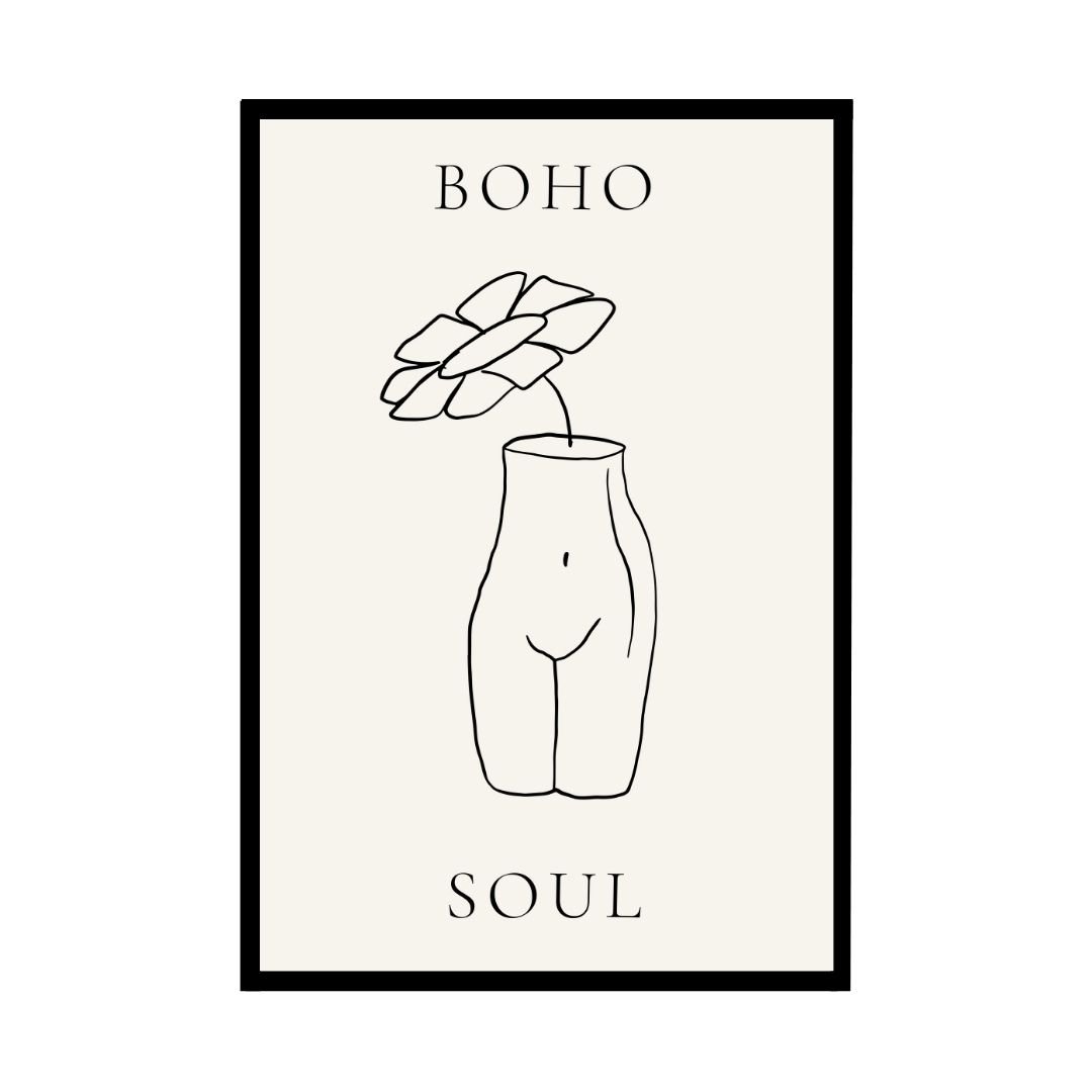 This captivating Boho Soul Flower Vase Poster blends abstract art with natural beauty. The delicate line drawing of a vase with a single flower creates an inspiring and calming atmosphere in your home. Ideal for anyone who loves bohemian style, this piece reflects creativity and individuality.