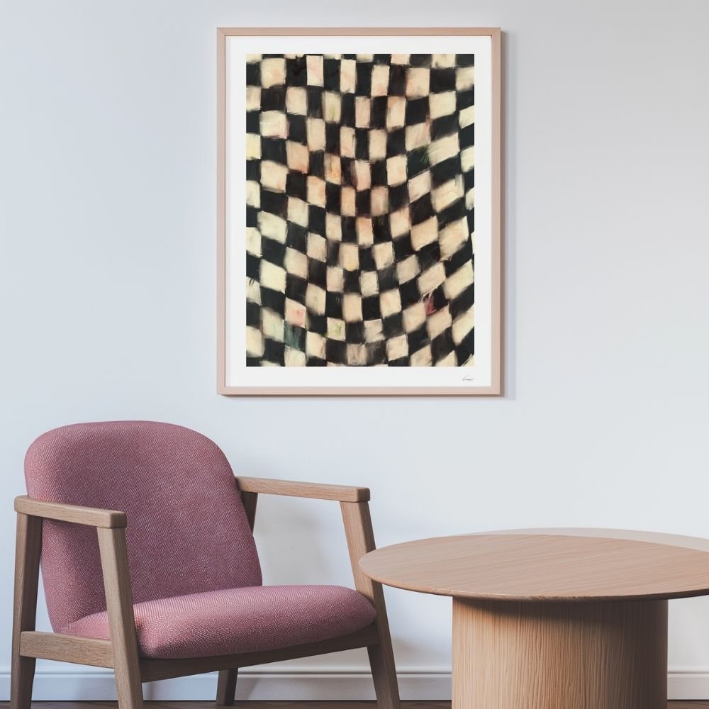 This abstract checkered pattern poster combines a unique design of alternating black and white squares, creating a dynamic visual effect. The pattern seems to move and shift, adding an energetic, modern feel to your space. A perfect fit for any contemporary interior that needs a bold statement piece.