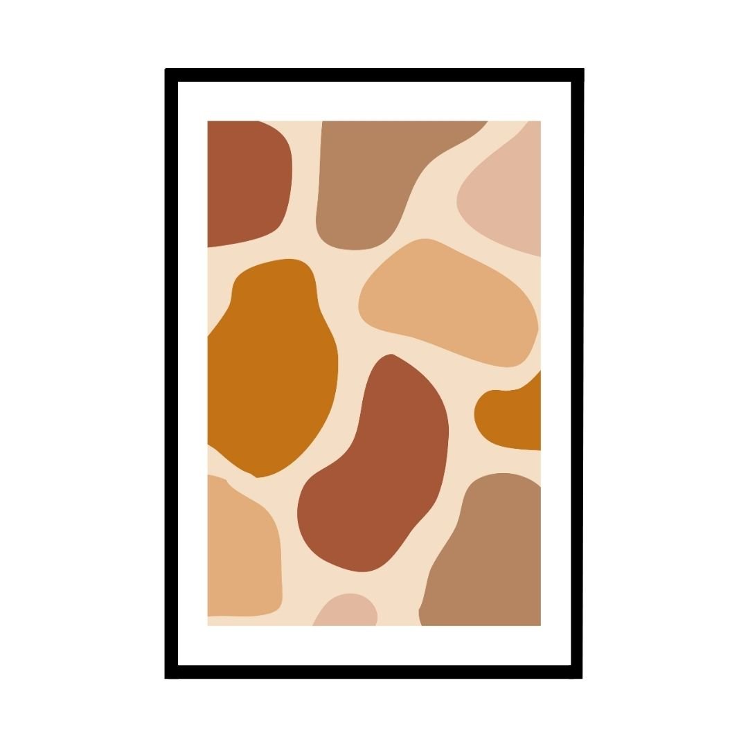 This warm earth-toned abstract art print features smooth, organic shapes in shades of terracotta, brown, and peach. The minimalist design adds a modern touch to any room while still maintaining a sense of warmth and familiarity.
