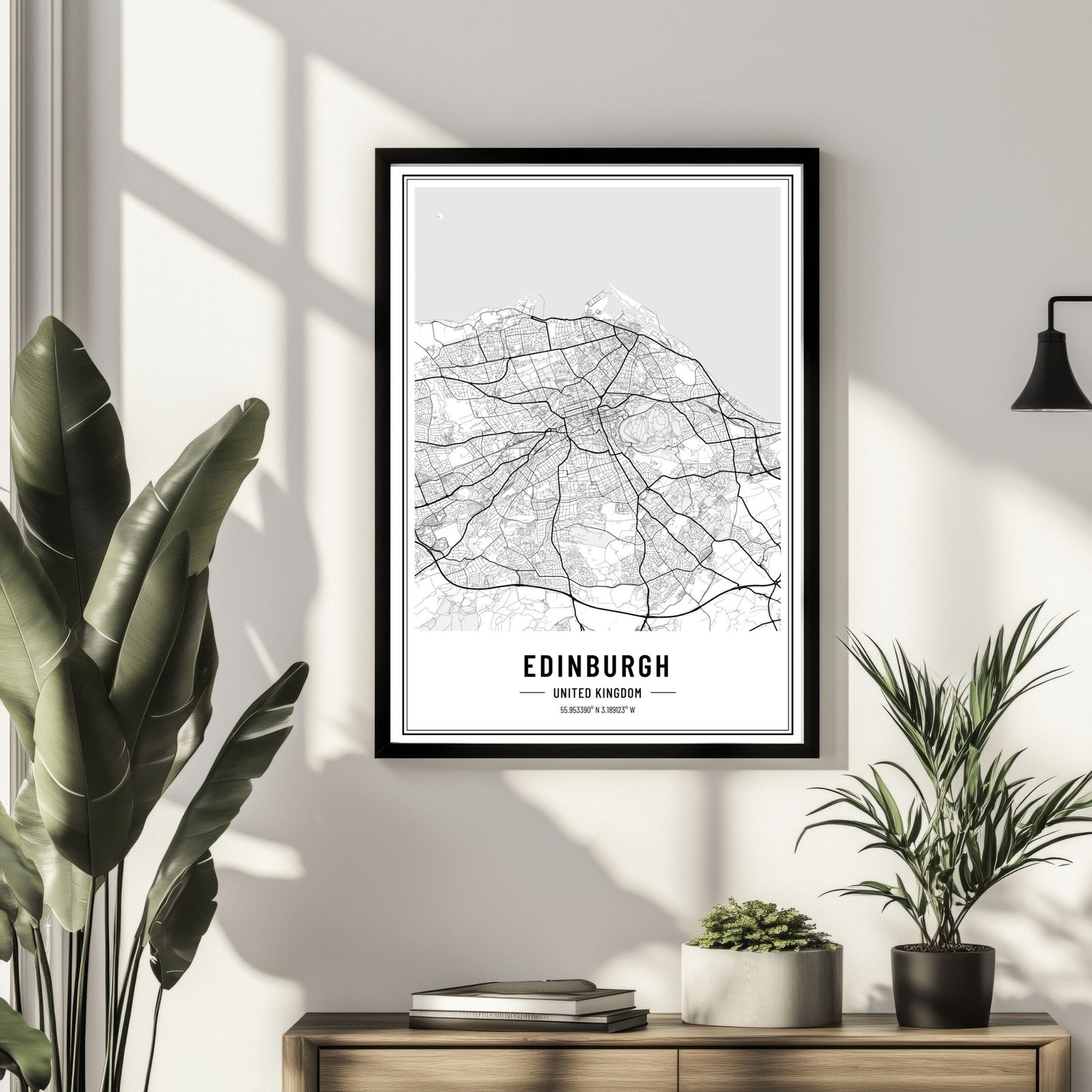 Bring the beauty of Scotland’s capital to your walls with this black and white map print of Edinburgh. Designed with meticulous attention to detail, this elegant print showcases Edinburgh’s streets, districts, and city layout in a clean, minimalist style. Perfect for modern interiors, offices, or creative spaces, this detailed Edinburgh map print adds a touch of sophistication to any room.