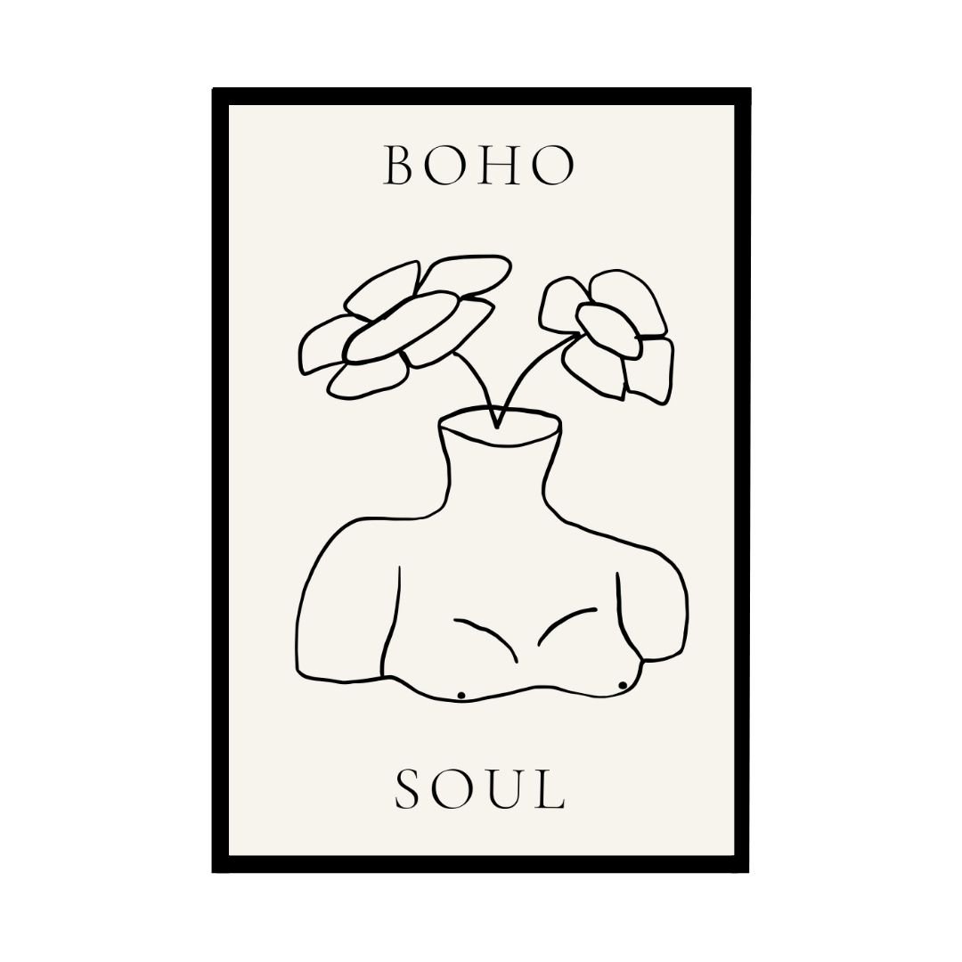 This Boho Soul Female Bust Poster is an elegant, minimalist design celebrating the beauty of the female form. Featuring a stylized bust with soft lines and delicate floral accents, this poster embodies the spirit of boho chic. A perfect choice for art lovers who appreciate subtle yet powerful design.