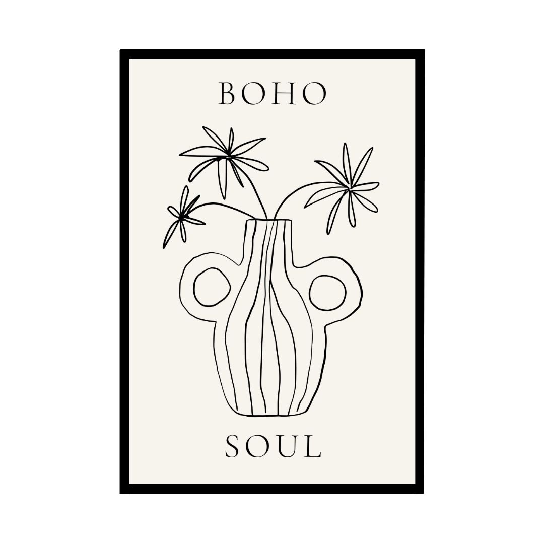 This Boho Soul Floral Vase Poster features an elegant vase with vibrant flowers in a minimalist line art style. It embodies the beauty of nature and the free-spirited vibe of boho design. The soft tones and delicate details make this a perfect addition to any room needing a touch of organic beauty.