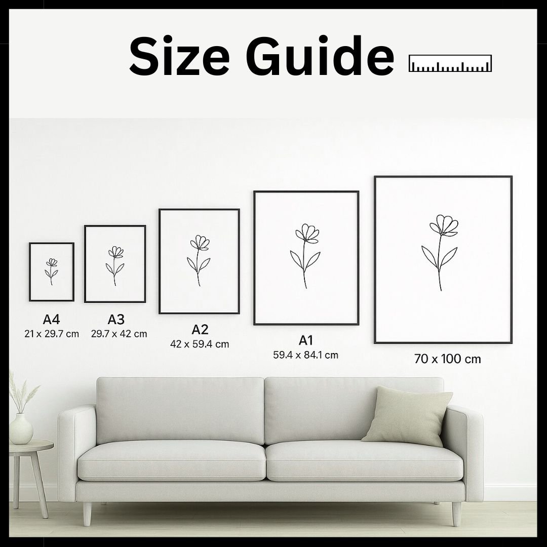 | Size | 70×100 cm / 28×40″, A1 (59.4 x 84.1 cm), A2 (42 x 59.4 cm), A3 (29.7 x 42 cm), A4 (21×29.7 cm) |