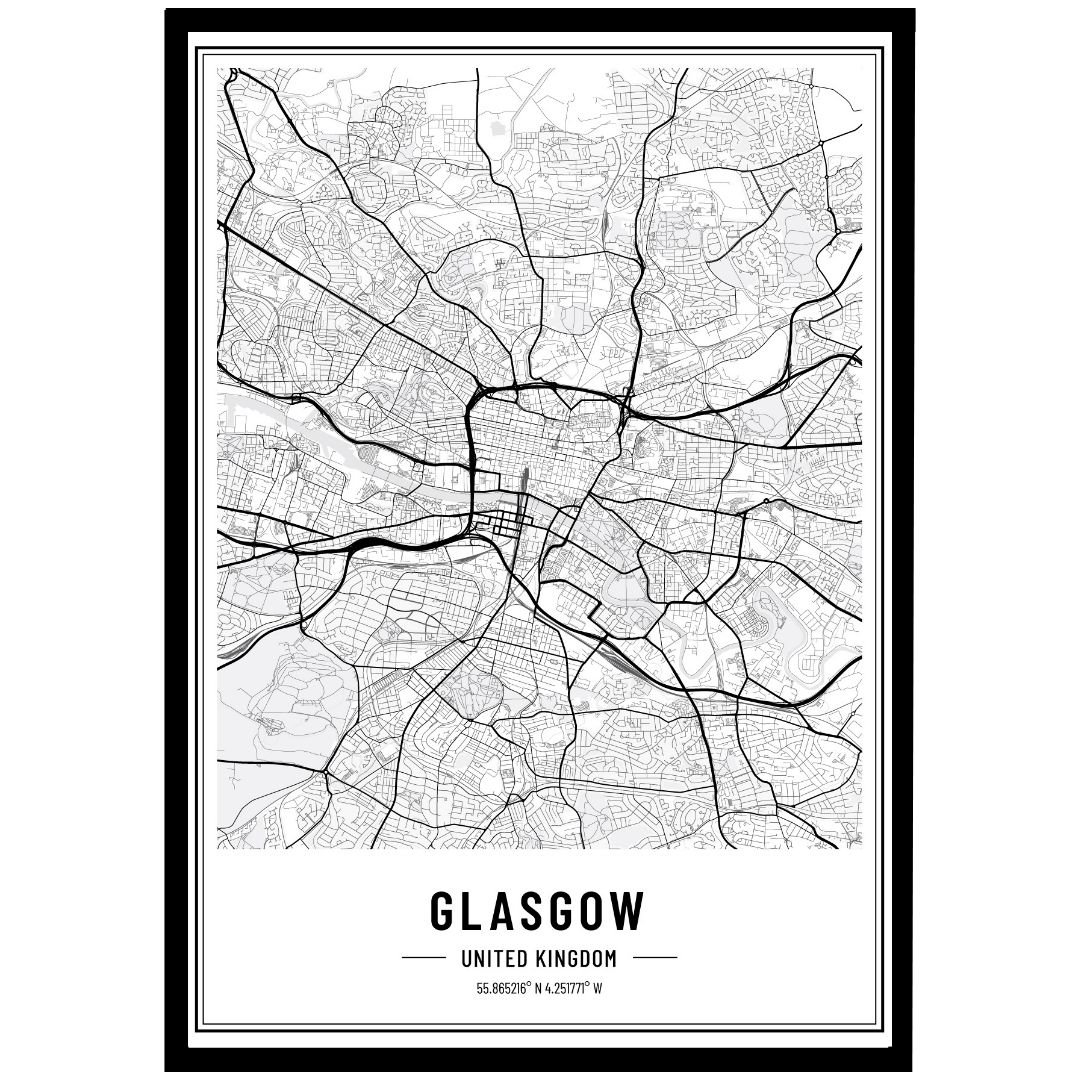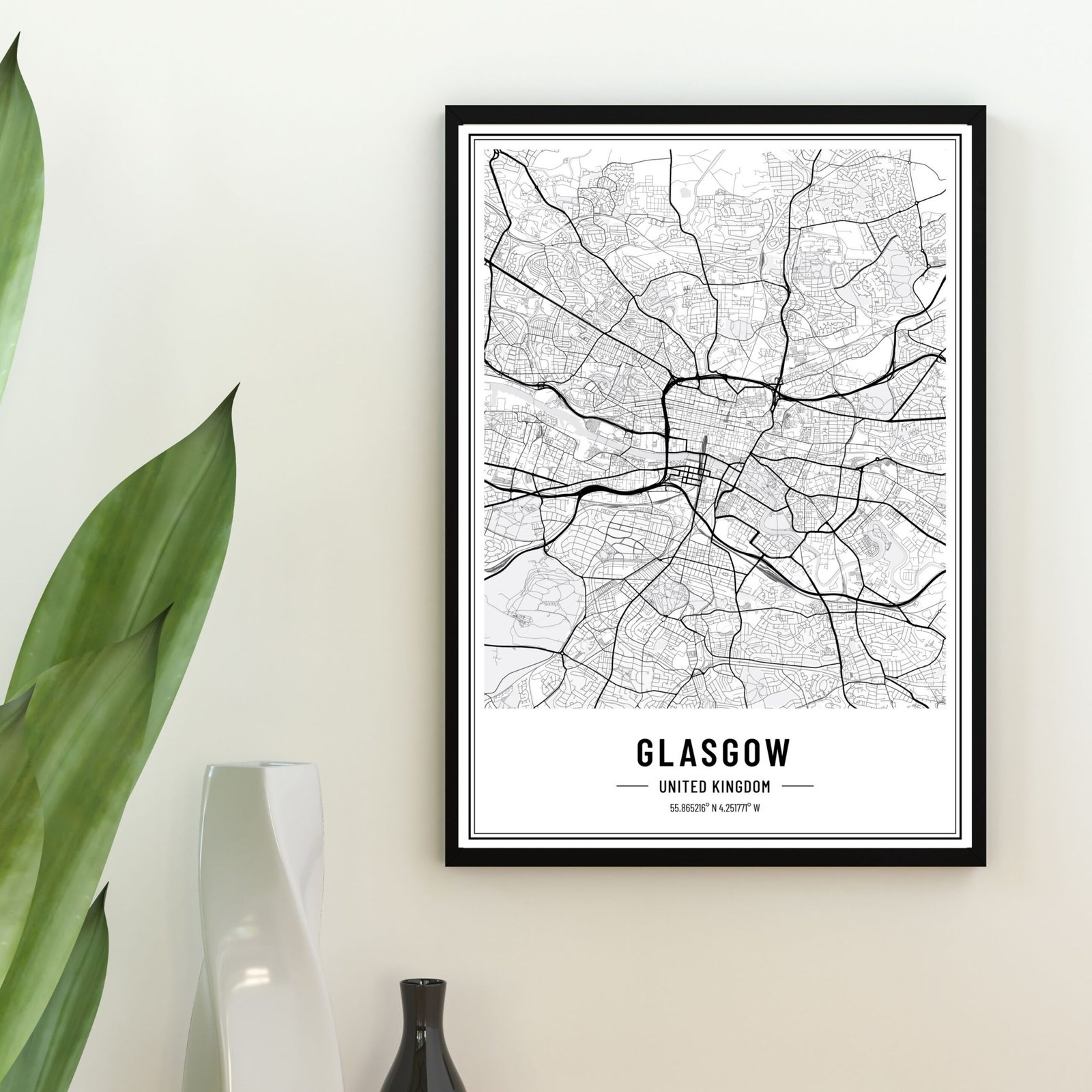 Celebrate Scotland’s largest city with this black and white map of Glasgow. This detailed artwork beautifully displays Glasgow’s streets, districts, and city layout in a clean and minimalist monochrome design that suits any interior style. Perfect for modern homes, offices, or creative spaces, this detailed Glasgow map print captures the city’s vibrant structure and architectural character through fine linework and balanced design.