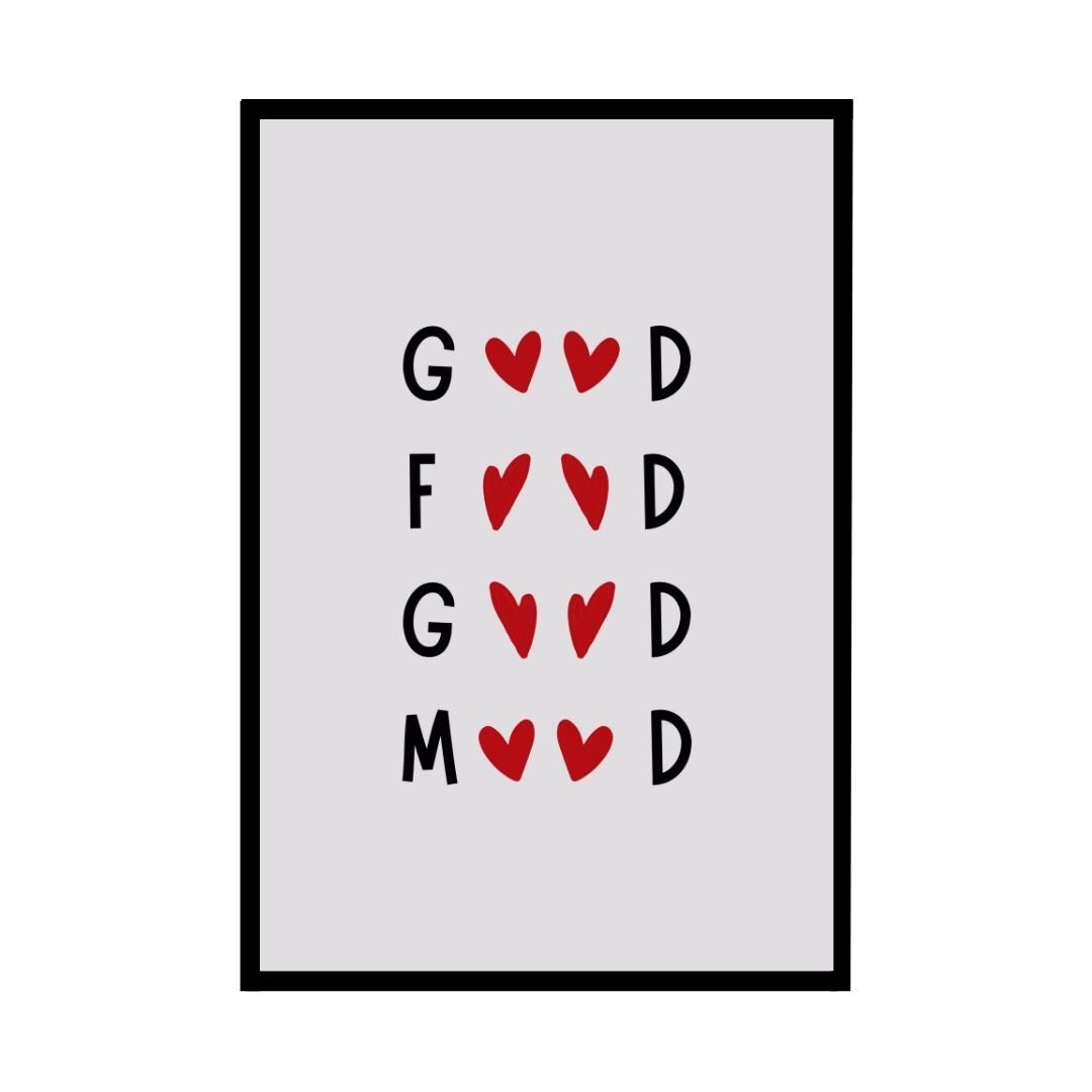 Set the tone for your kitchen or dining room with our Good Food, Good Mood print. This joyful and inspiring typography artwork is ideal for anyone who feels that a good meal equals a good attitude. Simple, attractive, and flavorful, just like your cooking!