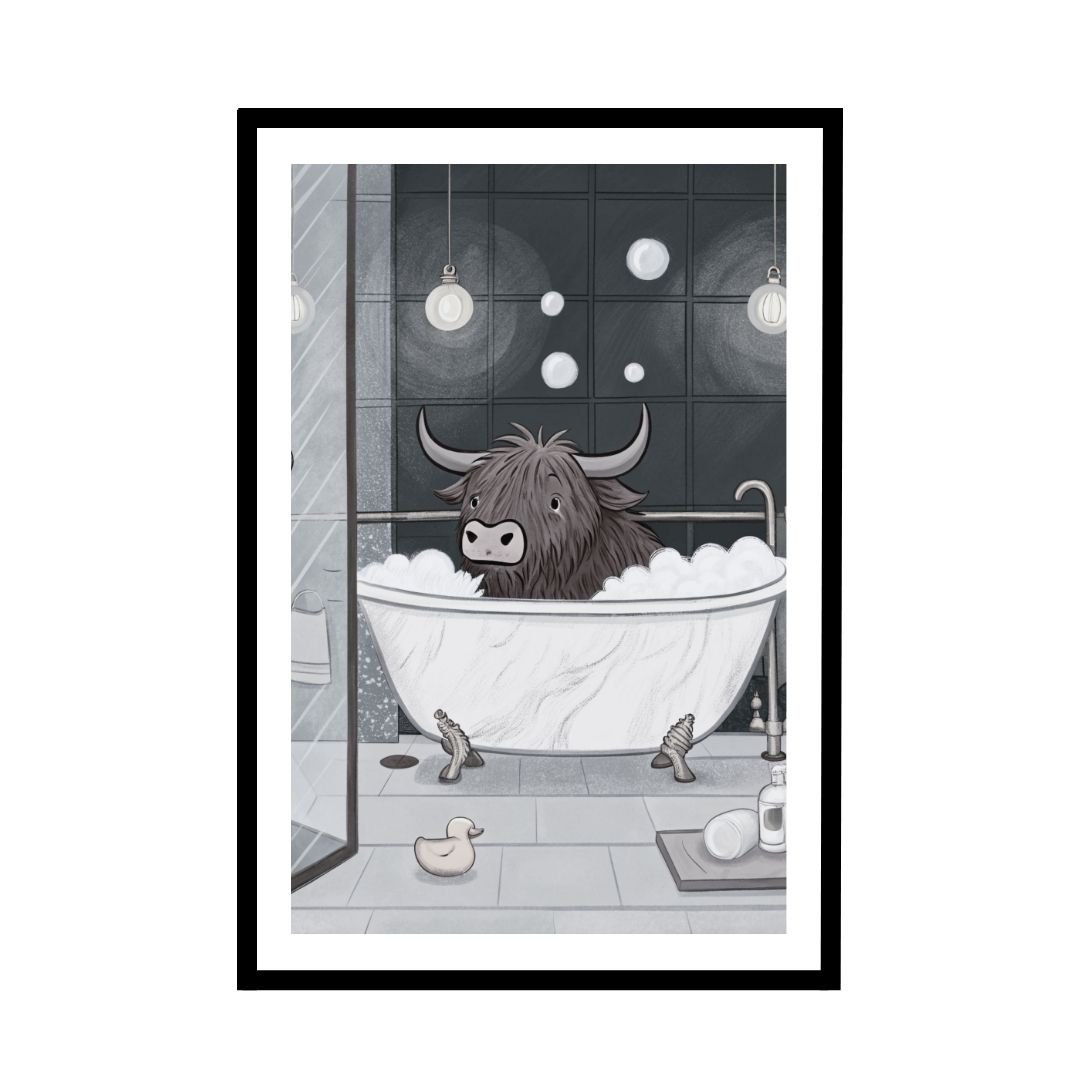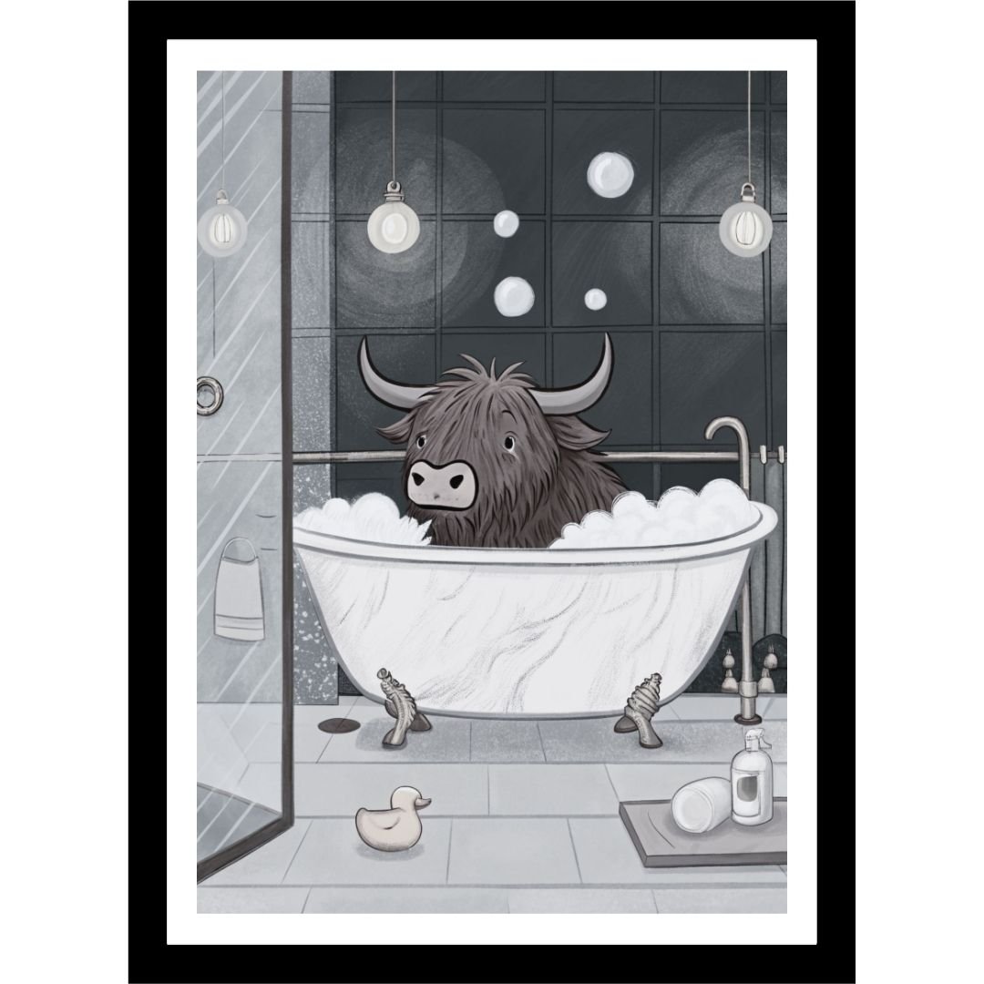 Bring a touch of countryside charm and a splash of humor to your space with our Highland Cow in Bathtub print. Featuring the famously fluffy Highland cow enjoying a relaxing soak, this delightful artwork blends rustic coziness with playful personality. Perfect for bathrooms, cottages, or farmhouse-style homes.
