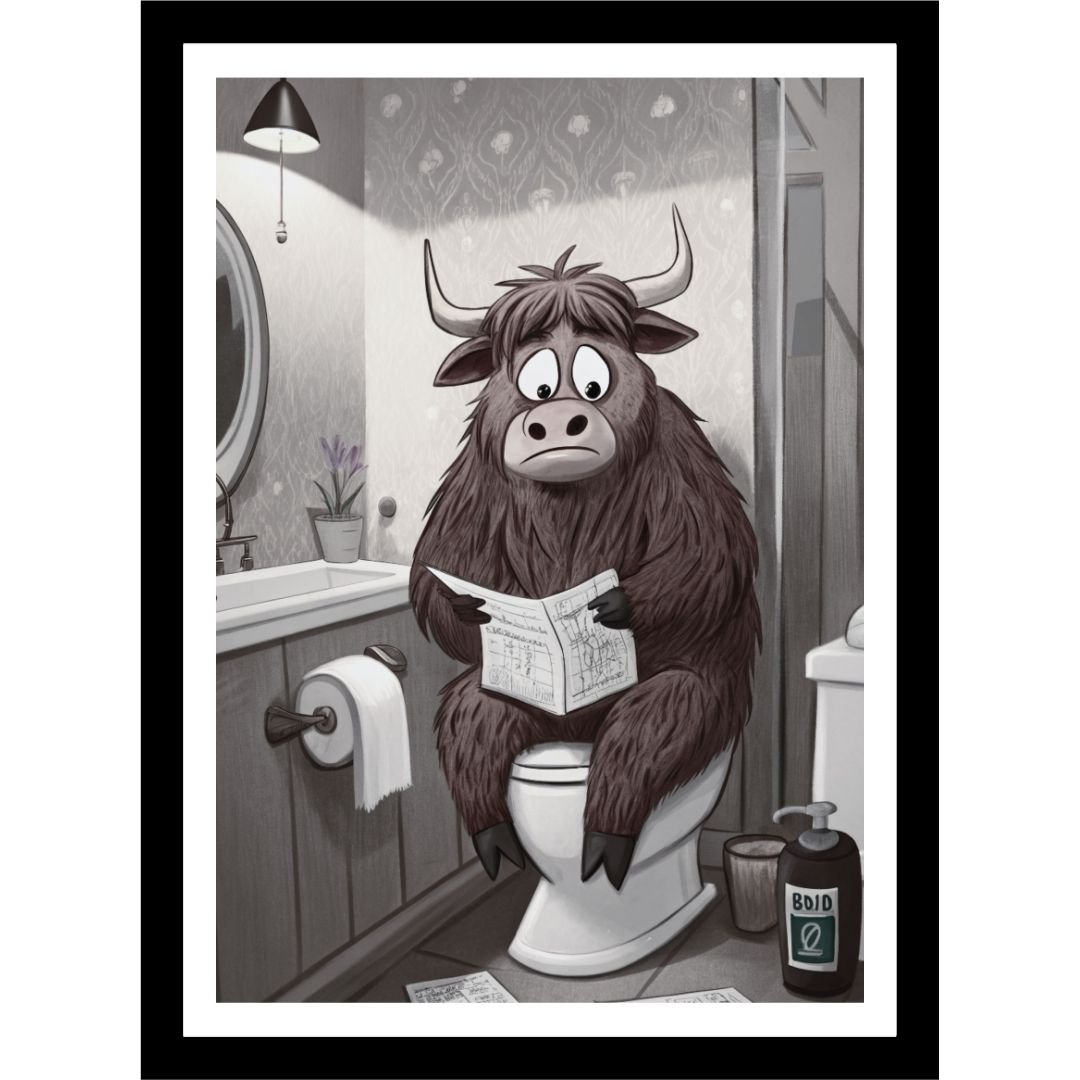Add a dose of rustic humor to your bathroom with our Highland Cow on Toilet print. This delightfully fluffy cow takes a moment of peace in the most unexpected place. perfect for farmhouse fans with a playful side. Ideal for powder rooms, guest baths, or anyone who loves lighthearted, animal-themed art.