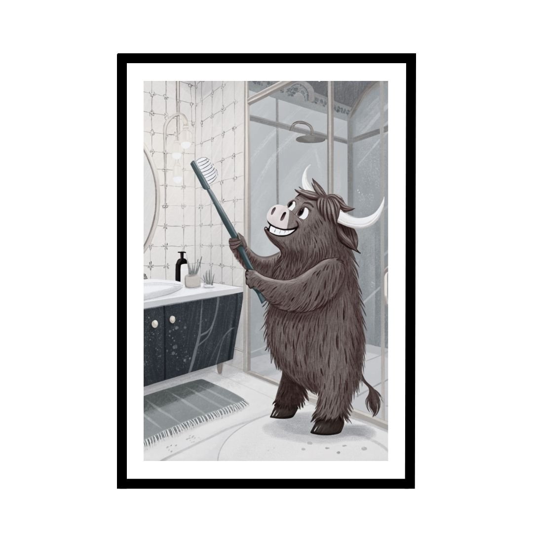Start the day with a smile thanks to our Highland Cow with Toothbrush print. This hilarious and charming piece features everyone’s favorite fluffy cow ready for their morning routine, toothbrush in hoof! A perfect addition to rustic, farmhouse, or family bathrooms that could use a little personality.