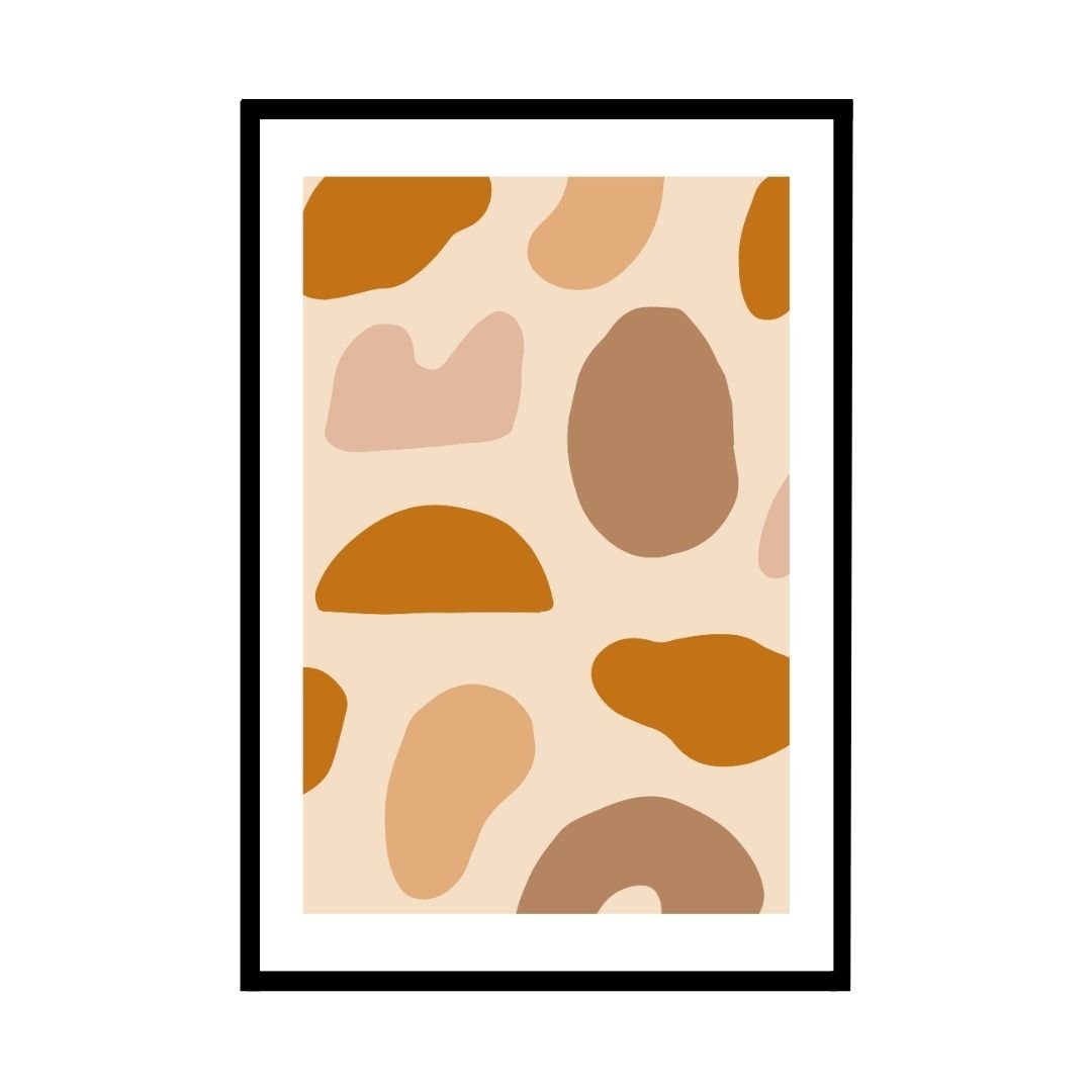 This abstract art print features irregular organic shapes, in beige, and warm brown tones, creating a soothing and artistic atmosphere in any room. Its earthy tones bring warmth and style to your living room, bedroom, or any space that needs an artistic focal point.