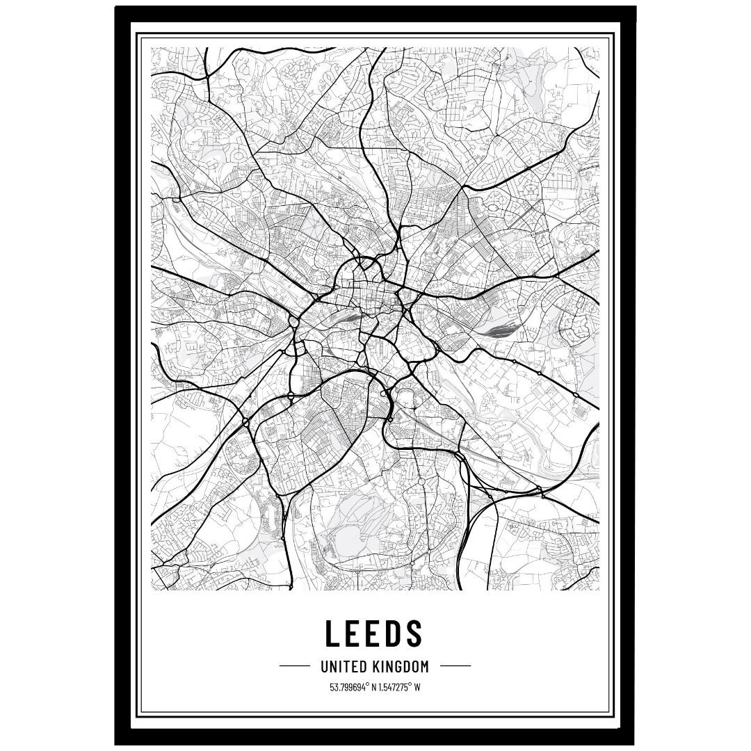 Celebrate the vibrant city of West Yorkshire with this black and white map of Leeds. This detailed print showcases Leeds’ streets, districts, and key geographical features in a clean, minimalist monochrome design that fits perfectly into any décor style. Perfect for modern homes, offices, or studios. Leeds map print captures the city’s character and layout through precise linework and elegant simplicity.