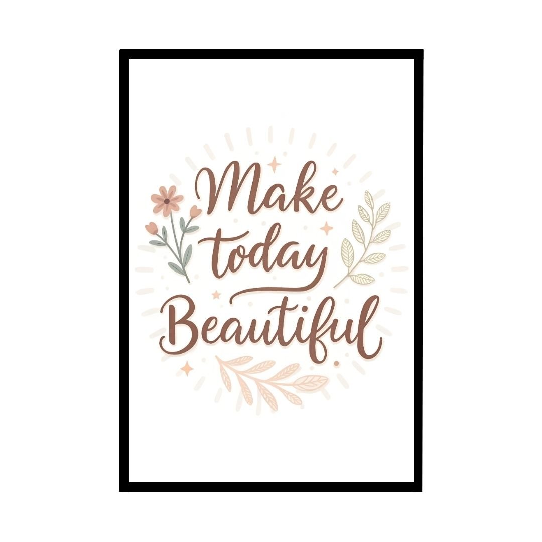 Begin the day with a gentle inspirational message “Make Today Beautiful” surrounded by delicate floral embellishments in earthy, relaxing tones. This poster is ideal for cheering up your bathroom, foyer, or workstation. It blends positivity and warmth in a minimalist, homey manner. Ideal for simple wood framing that complements any style.