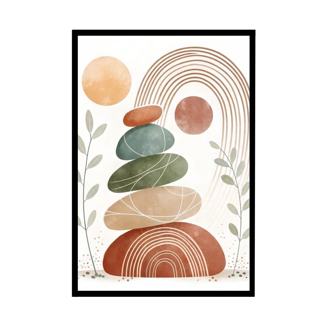Stacked stones poster made to blend the magic of the moon with the grounding presence of nature. With warm, muted tones and a serene design, it brings harmony and a touch of celestial charm to any modern, bohemian, or spiritual space.