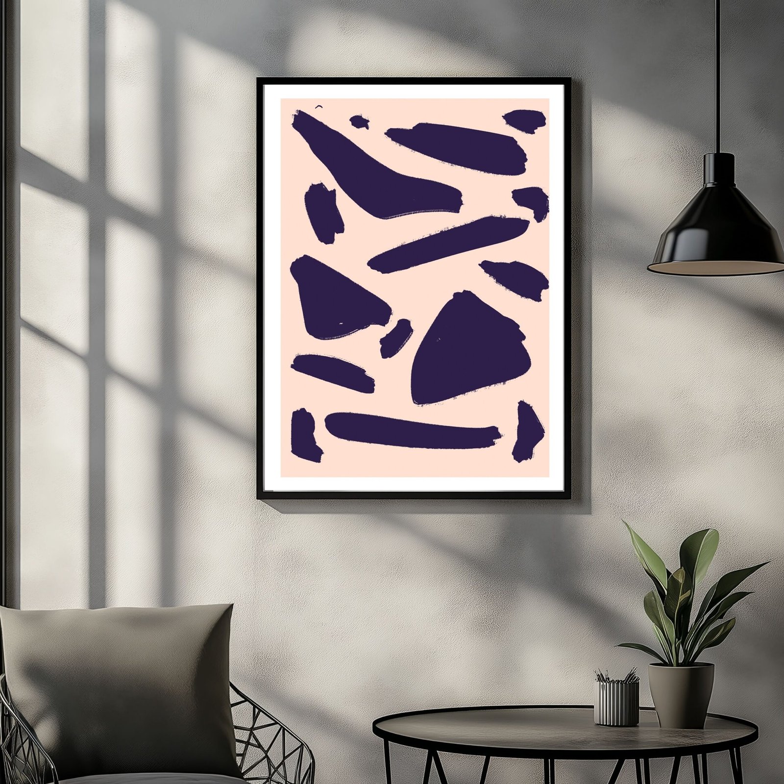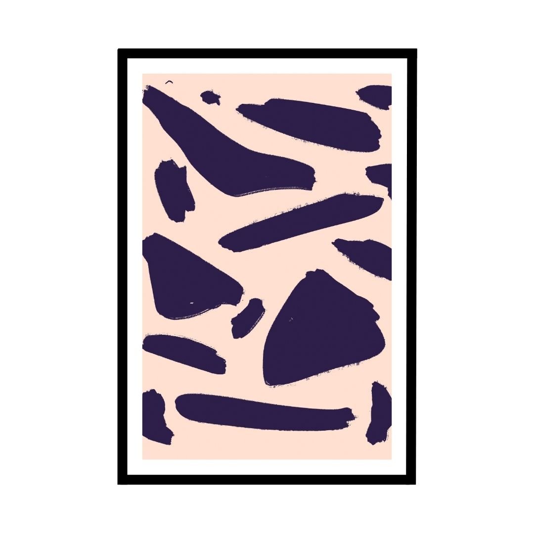 This abstract art print features bold navy blue and pink brushstrokes, creating a striking contrast that adds vibrancy to any room. The playful and modern design is perfect for contemporary homes that seek unique and eye-catching art.