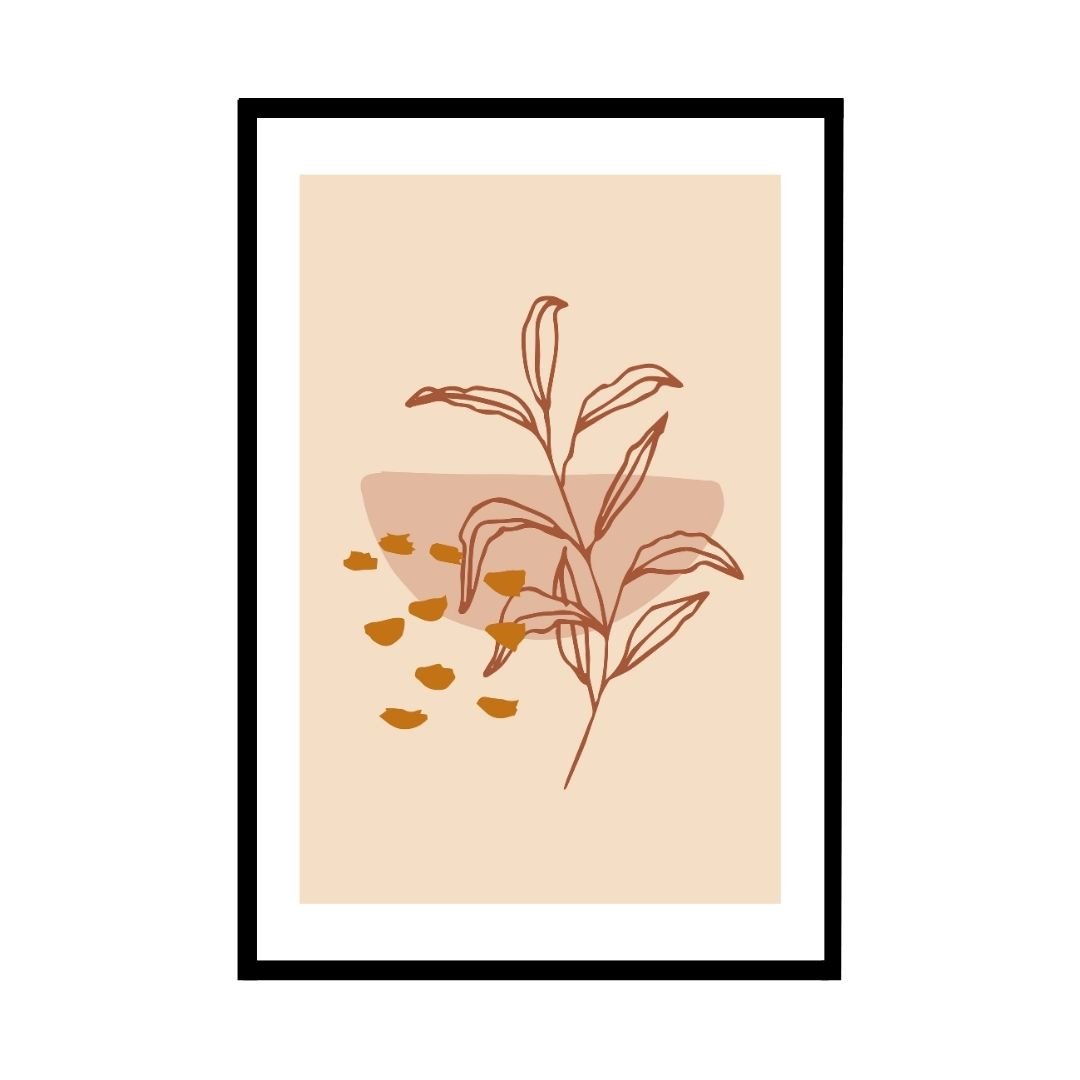 This elegant floral line drawing art print uses soft, neutral tones with a touch of rich golden hues to create a sophisticated and modern look. The gentle lines of the plant contrast beautifully with the warm background, making it a perfect addition to contemporary homes.