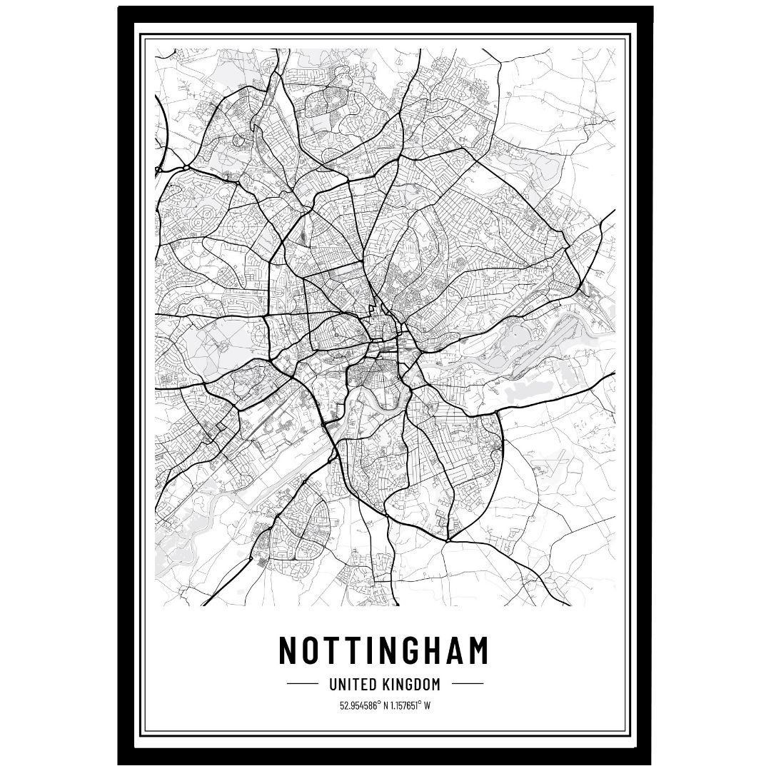 Celebrate the heart of the East Midlands with this black and white map print of Nottingham. This elegant, detailed print highlights Nottingham’s streets, districts, and city layout. In a beautifully minimalist monochrome design that suits any décor. Perfect for modern homes, offices, or studios, this detailed Nottingham map print captures the city’s structure with precision.