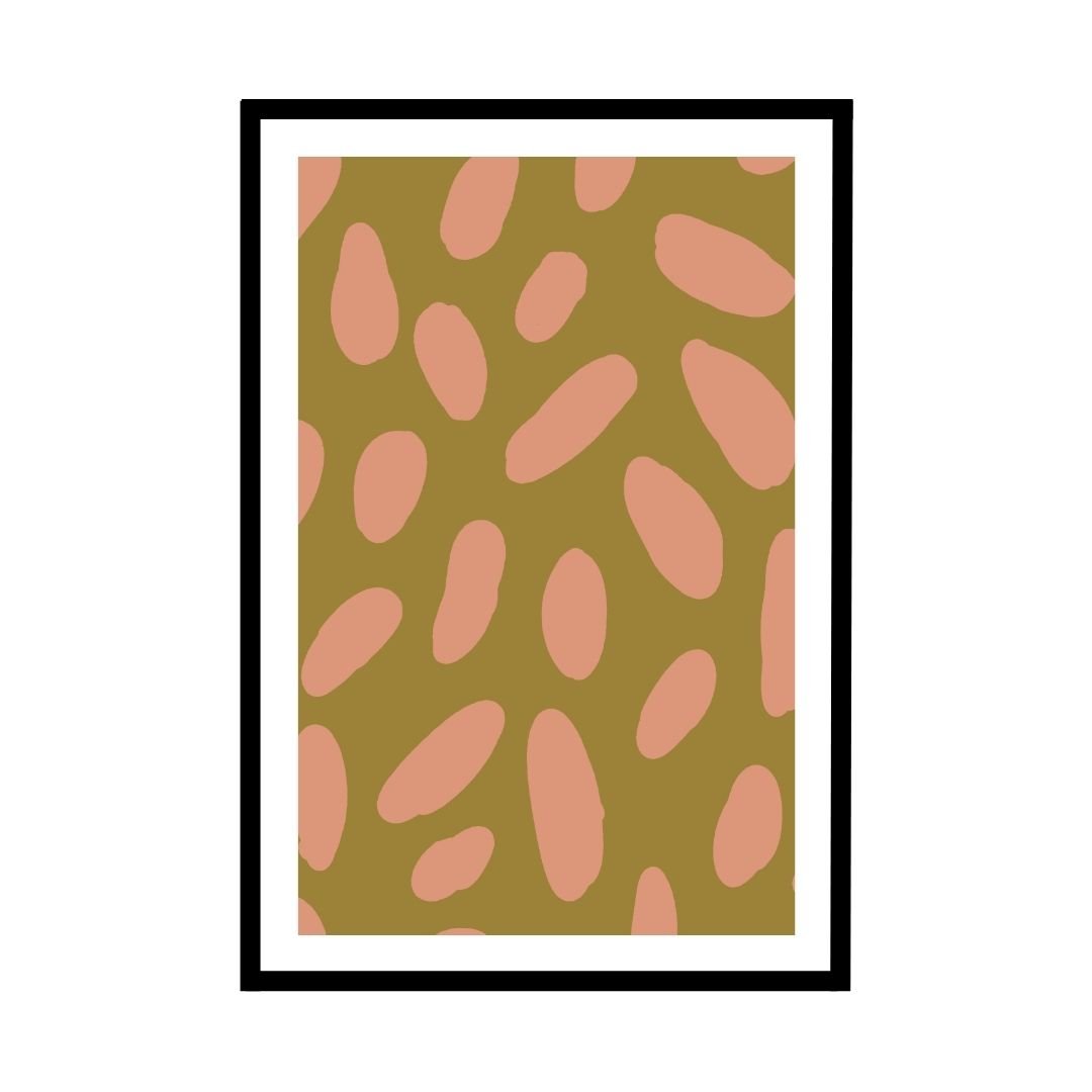 Featuring an earthy olive green backdrop with soft pink organic shapes, this poster creates a harmonious and stylish look. It’s an ideal piece for living rooms, bedrooms, or modern offices where a touch of warmth and creativity is desired.