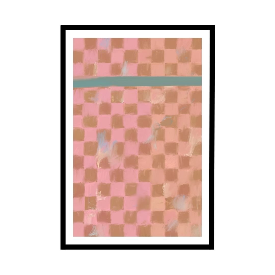 This abstract checkerboard design combines soft peach and blue tones, creating a playful yet sophisticated look for your walls. A great choice for contemporary and eclectic spaces, it adds warmth and energy to any room.