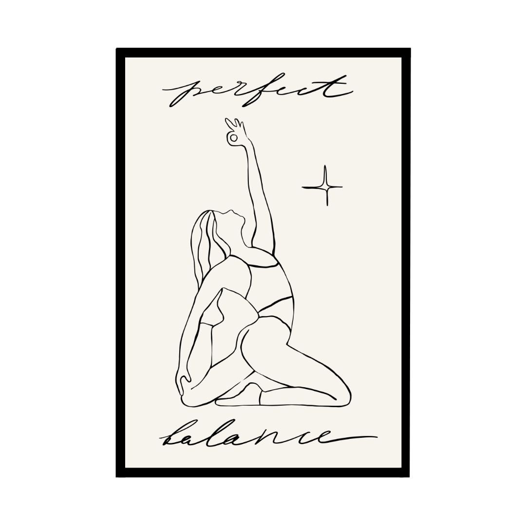 The Perfect Balance Yoga Poster captures the essence of equilibrium, strength, and grace in a minimalist yoga pose. This striking design is ideal for those seeking harmony and balance in their yoga practice or home decor.