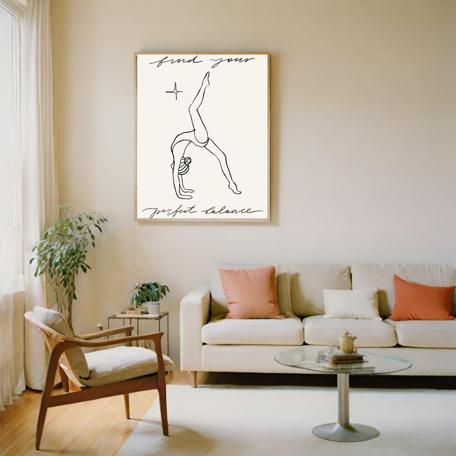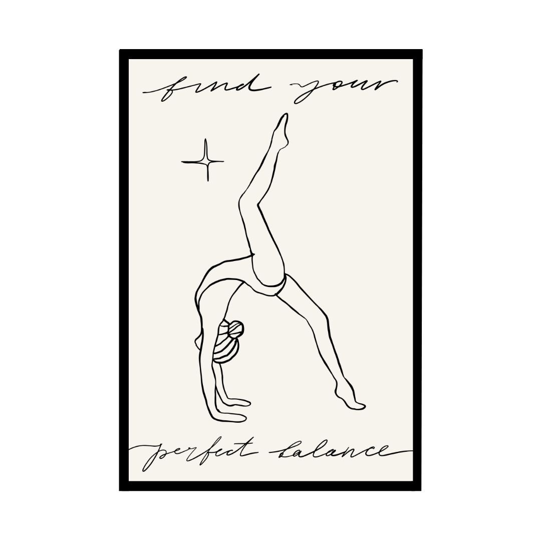 The find your Perfect Balance Yoga Poster features a graceful yoga pose that embodies equilibrium and serenity. This minimalist art print is perfect for those seeking a reminder to find balance in life. It brings a calming, peaceful energy to any yoga or wellness space.