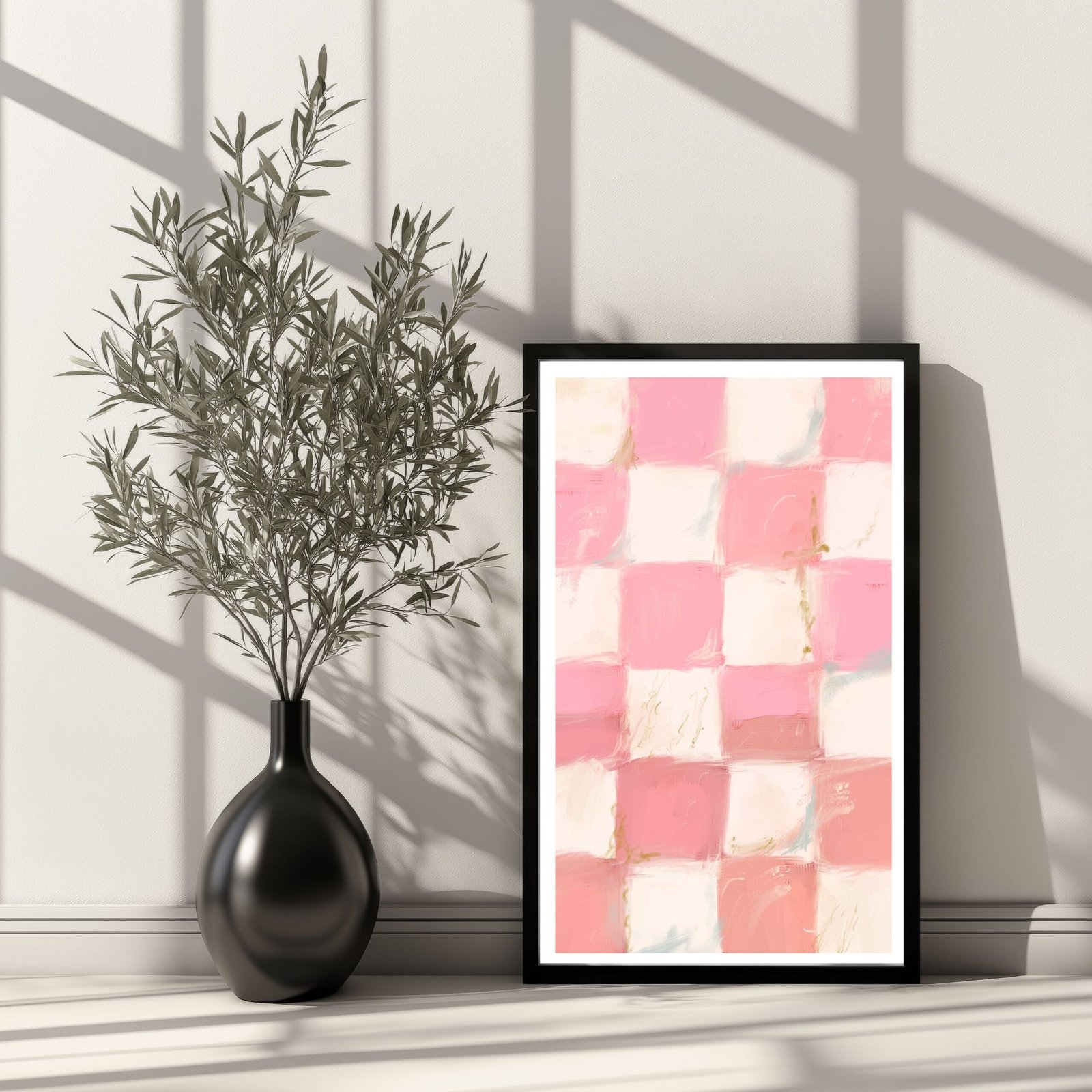 This playful checkerboard design blends soft pink and white hues, creating a modern and charming look for your walls. Perfect for contemporary living spaces, bedrooms, or kitchens.