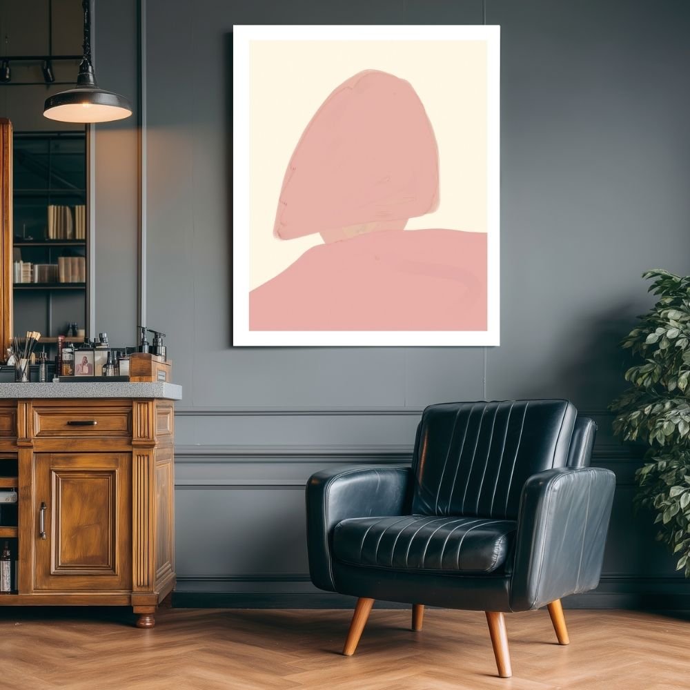 This minimalist pink silhouette poster portrays a soft, abstract shape of a person in a subtle pink hue. The simplicity and elegance of this artwork make it ideal for adding a serene and calming atmosphere to bedrooms or living rooms.