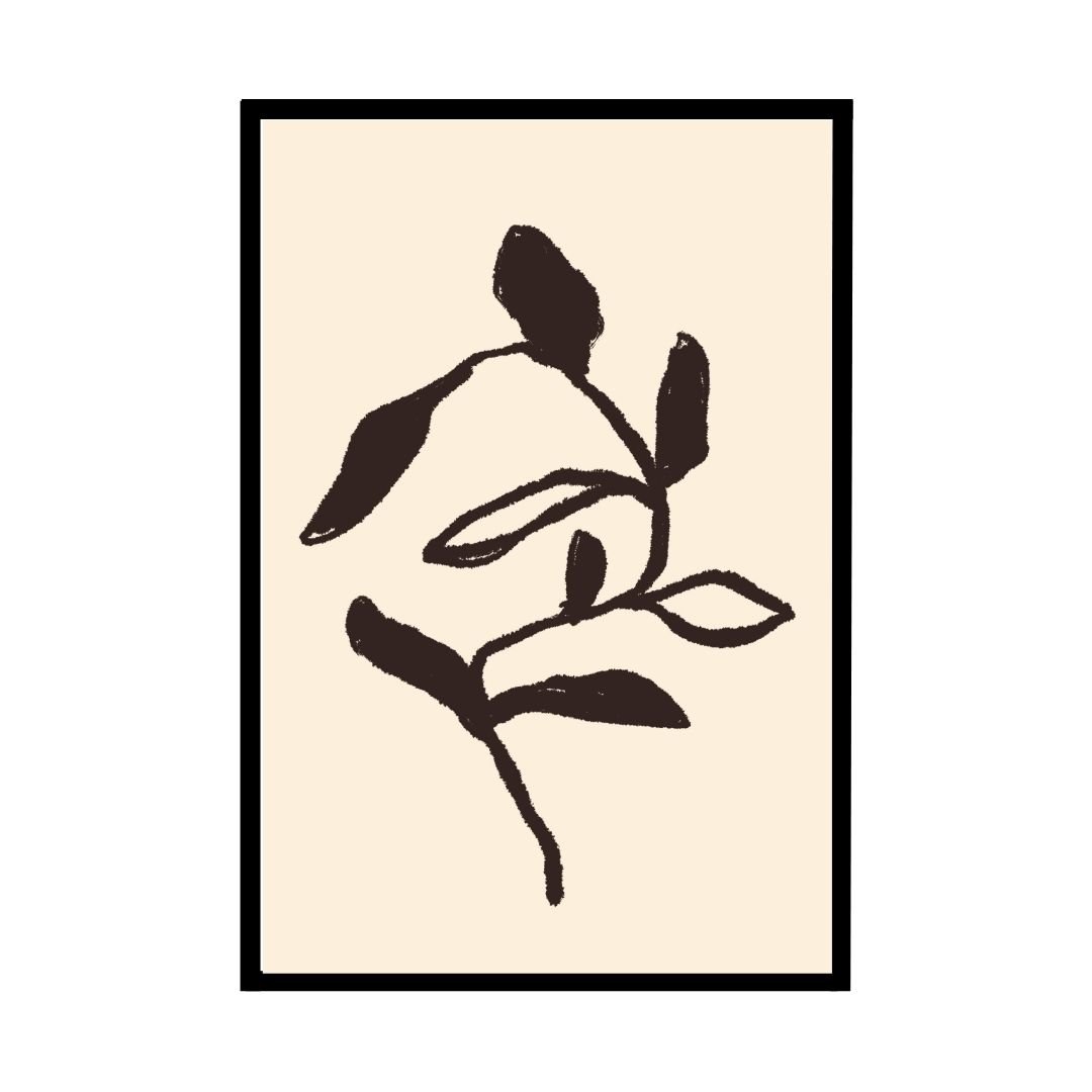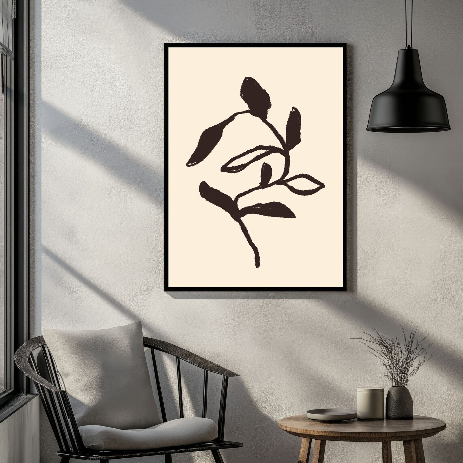 This plant art print features bold, flowing lines of a plant, drawn in deep black against a neutral beige background. The simplicity and elegance of the design make it an ideal choice for modern, nature-inspired spaces.