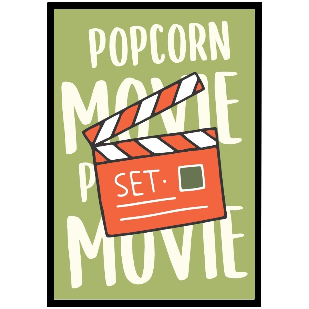 The Popcorn Movie Set Wall Art is a fun and creative print designed for film lovers. It features a movie clapperboard illustration with the words “Popcorn Movie Set” in a playful style.