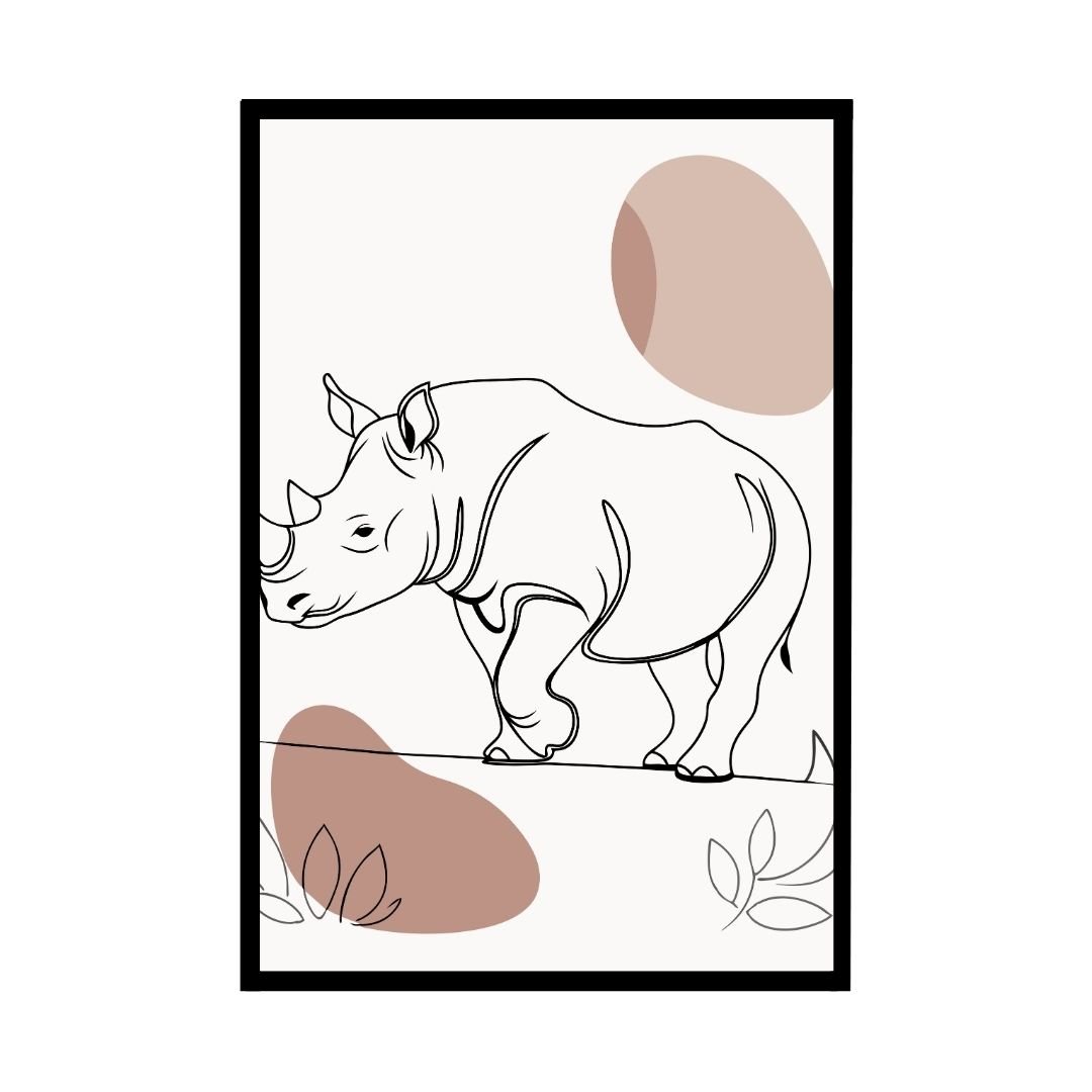 Capture the powerful essence of the rhino with this minimalist boho line art. Featuring clean, bold lines and a modern design. It adds a striking yet elegant touch to any bohemian or contemporary space.