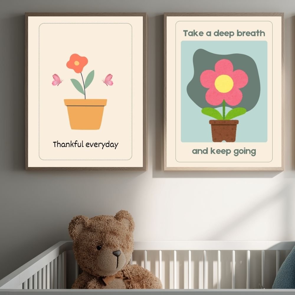 Bring positivity and style to your walls with this set of two framed prints. Featuring delicate floral designs paired with uplifting messages “Thankful Everyday” and “Take a Deep Breath and Keep Going” these prints inspire calm and gratitude in any space. Perfect for living rooms, bedrooms, or offices, they add both beauty and encouragement to your décor.