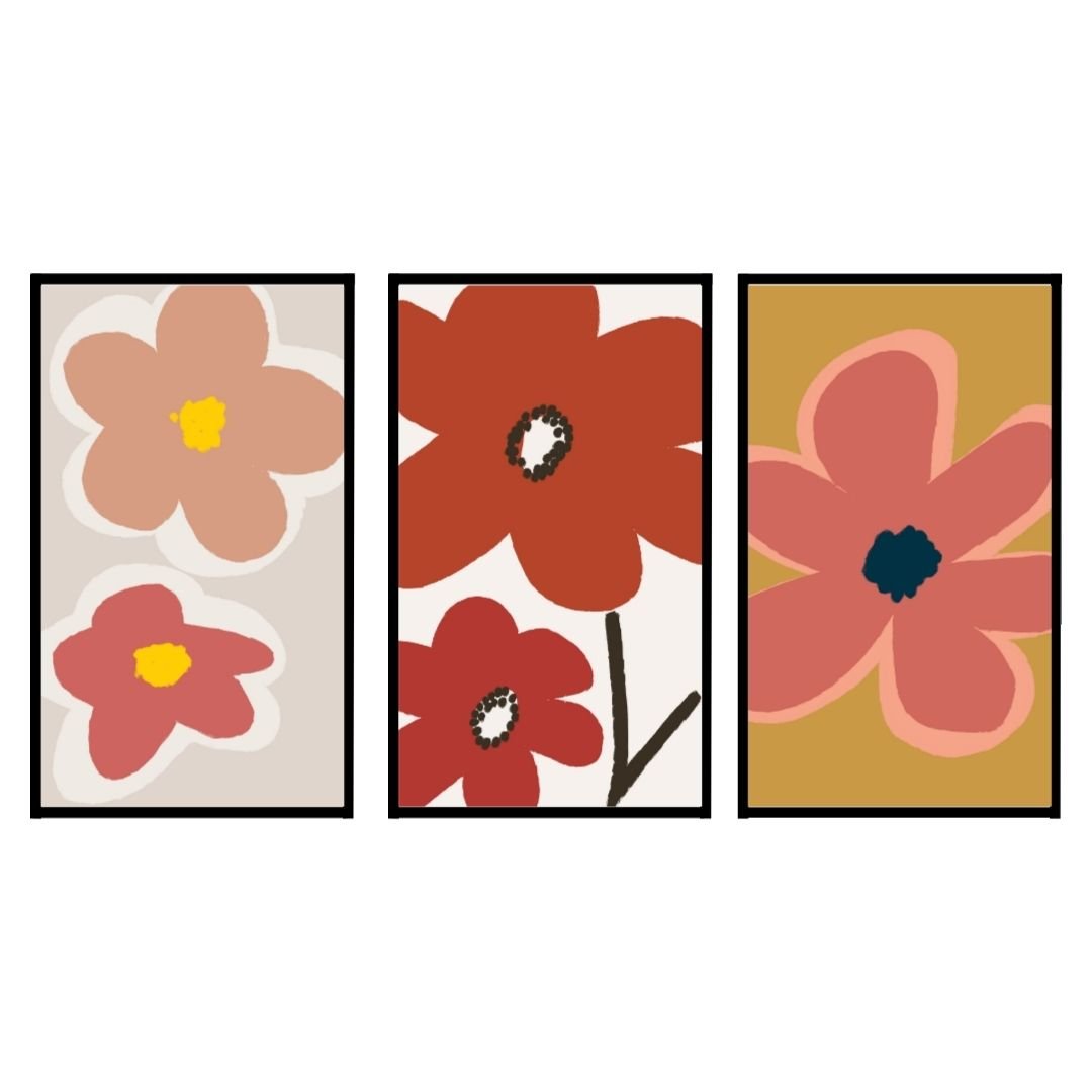 Add a vibrant touch to your walls with this set of three framed floral art prints. Featuring abstract flowers in a variety of colours, these prints bring modern elegance and artistic flair to any living room, bedroom, or office. Perfect for creating a stylish and lively focal point in your décor.