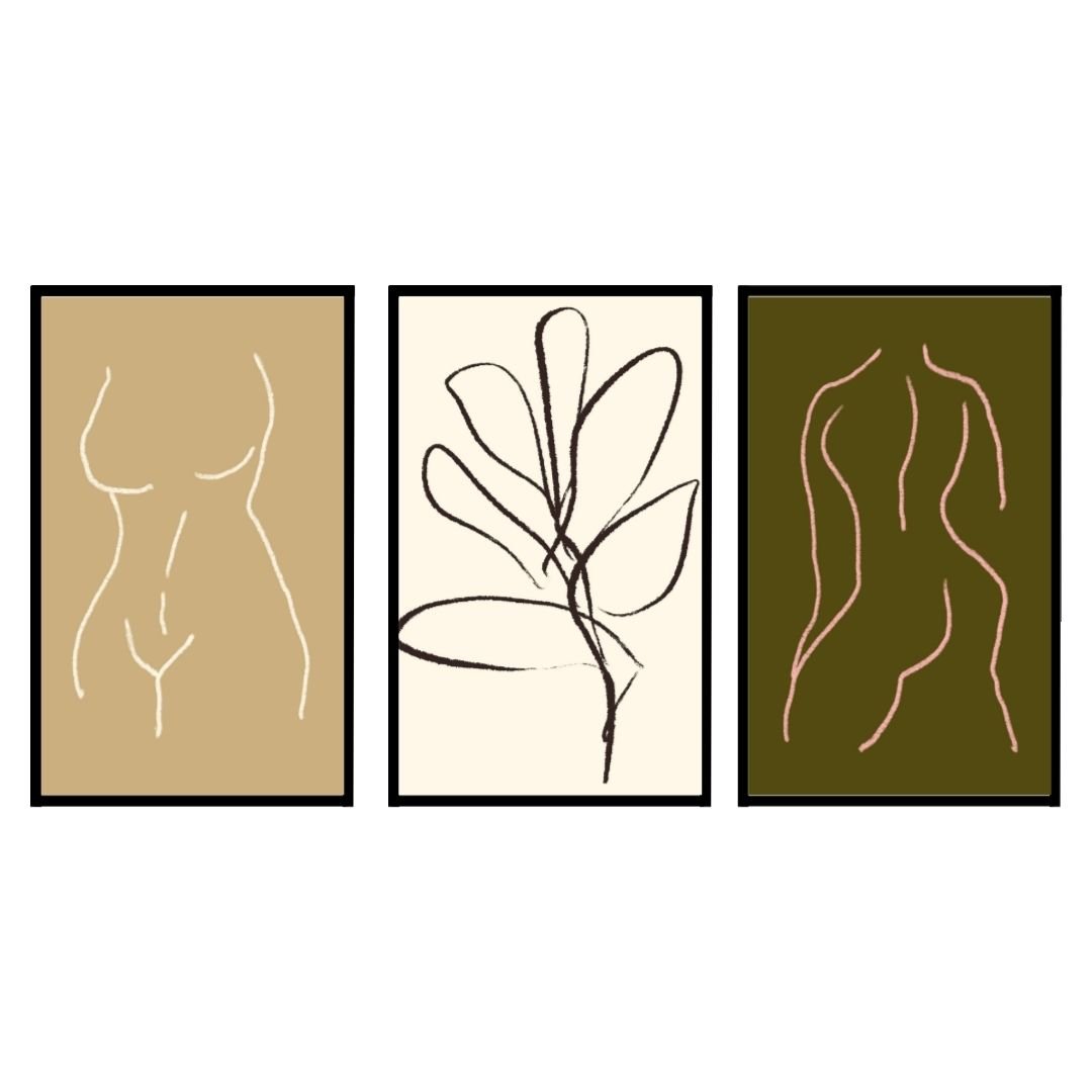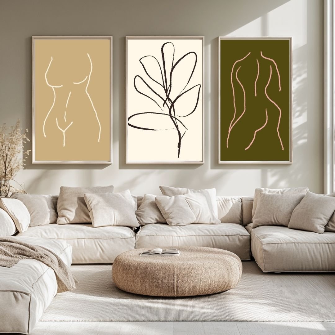 Enhance your walls with this set of three abstract art prints. Featuring a nude figure, a leaf design in warm, earthy tones, these prints bring a modern, artistic touch to any living room, bedroom, or office. Perfect for creating a sophisticated and contemporary focal point in your décor.
