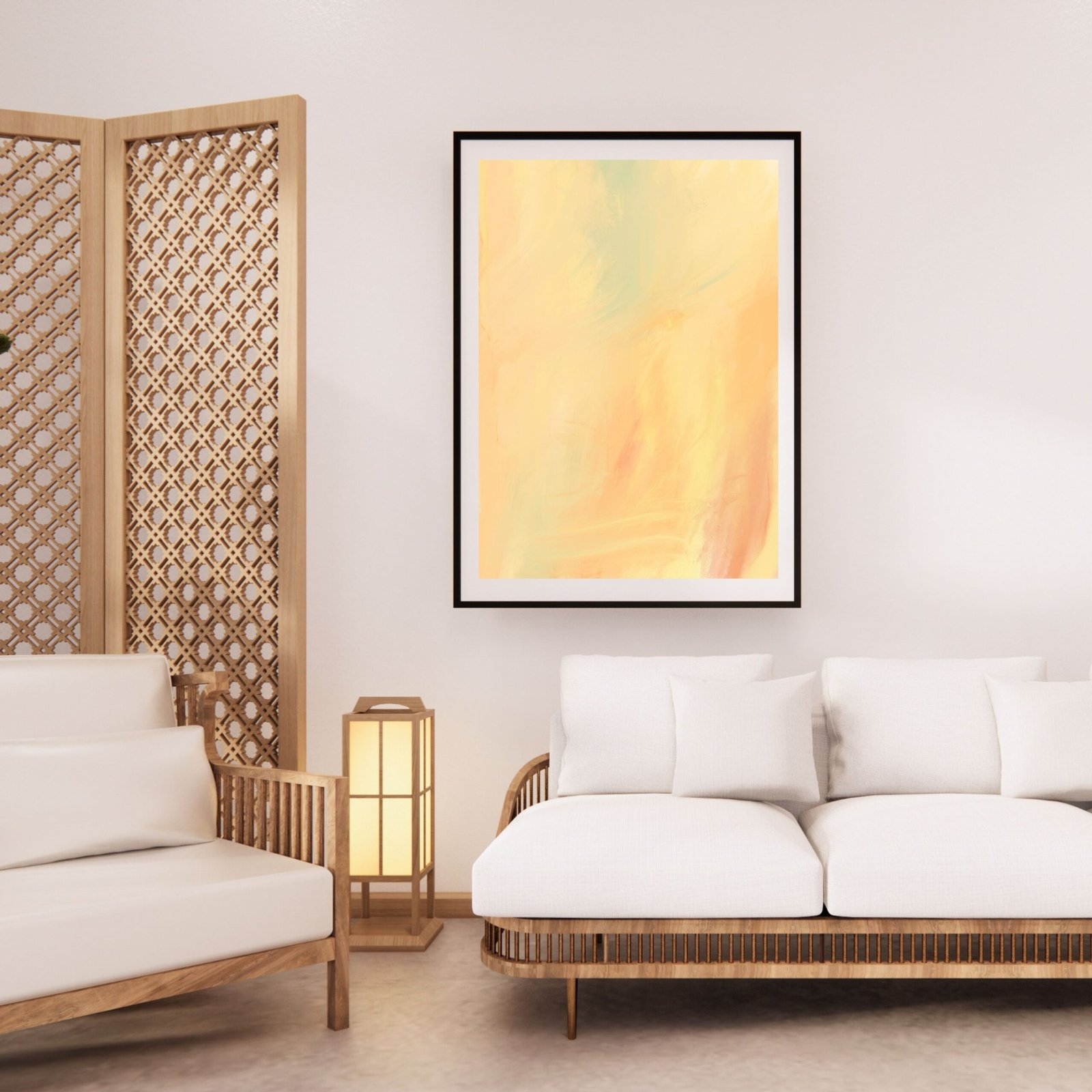 Featuring soft pastel shades of yellow, this abstract art brings a sense of calm and tranquility to your home. Its delicate brushstrokes and warm tones make it perfect for living rooms or bedrooms.