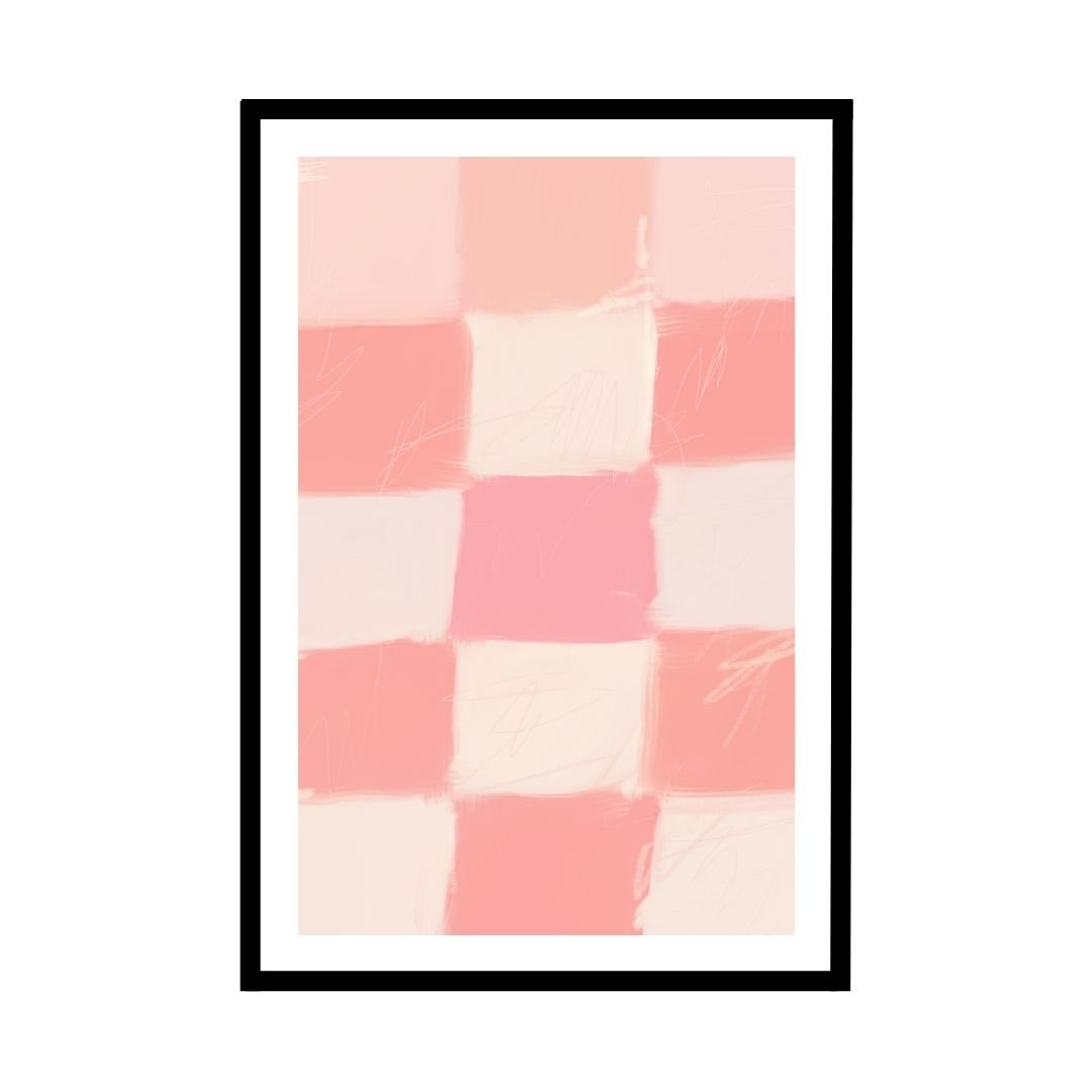This subtle yet stylish poster features a soft pink checkered pattern with alternating pastel hues. The imperfect brush strokes and gentle colours bring a calm and cozy vibe to any room. Perfect for modern interiors or minimalist designs, this piece adds a soft pop of colour to your walls without overwhelming the space.