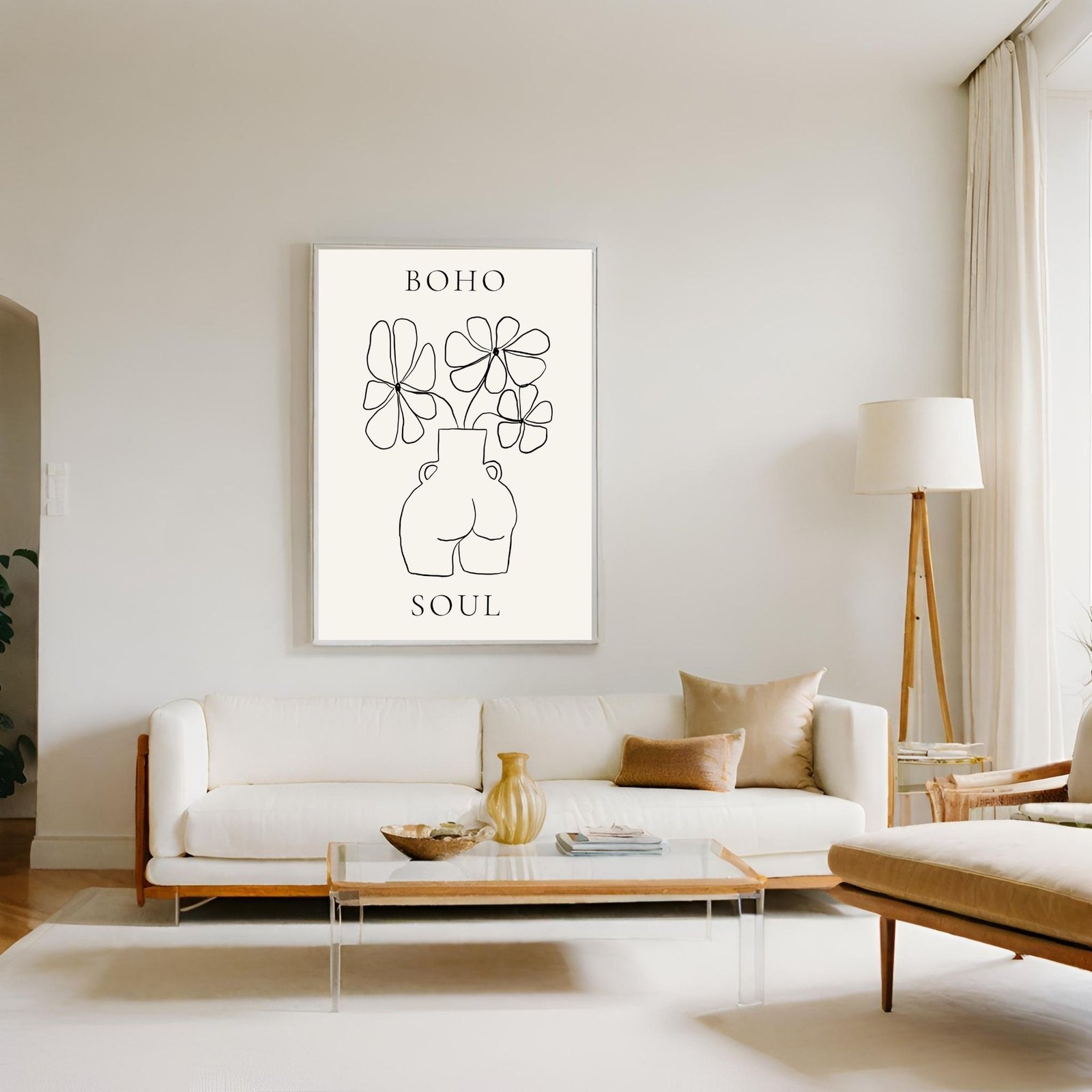This unique Boho Soul Vase with Three Flowers Poster combines delicate simplicity with striking elegance. Featuring a modern vase and floral accents, this piece reflects the beauty of natural forms. Perfect for a bohemian or minimalist aesthetic, this print brings an organic touch to any room, offering both serenity and sophistication.