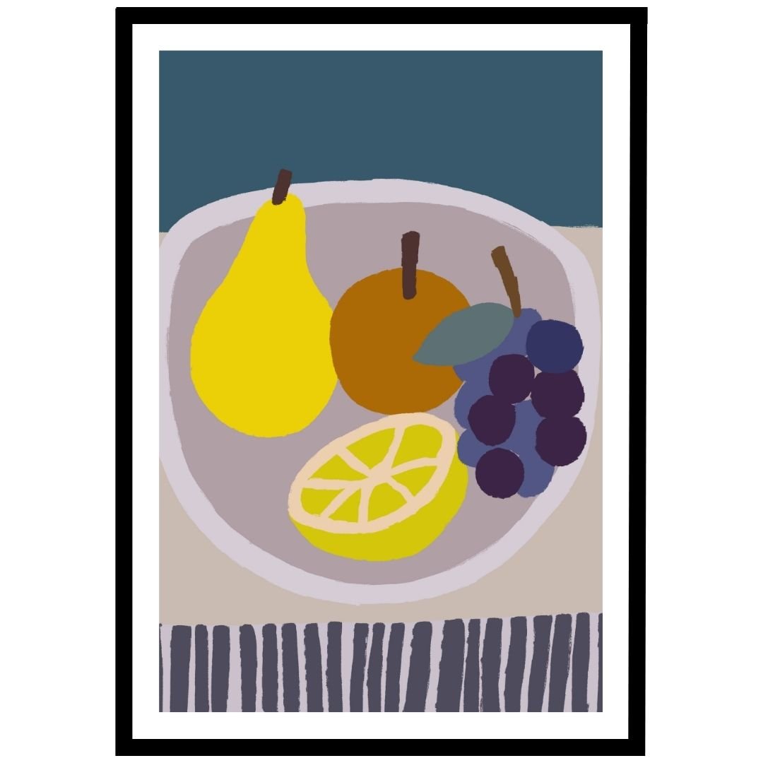 Brighten up your home with this playful and colourful fruit bowl illustration. Featuring pears, grapes, and a zesty lemon slice, this cheerful artwork brings a burst of freshness and energy to any kitchen or dining area.