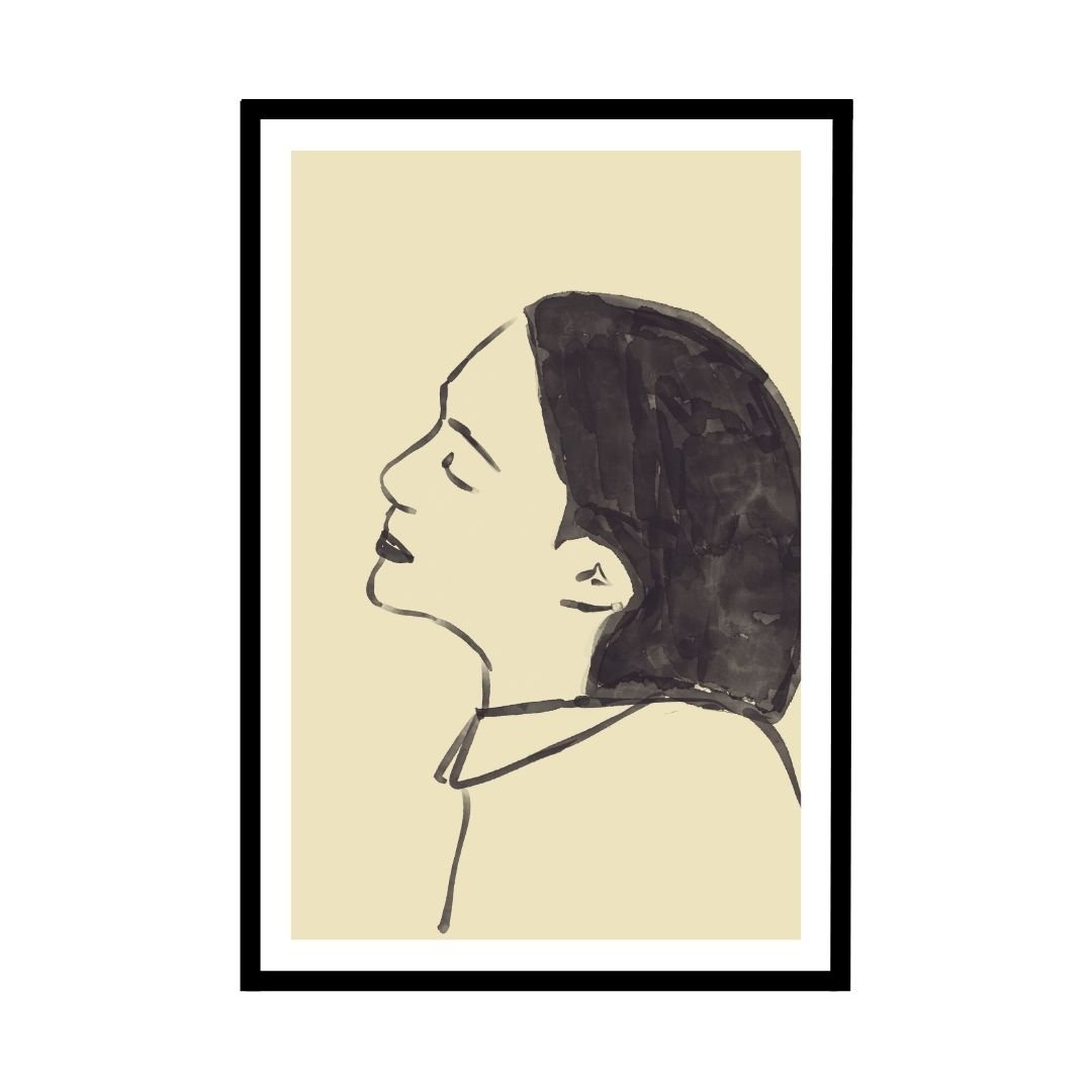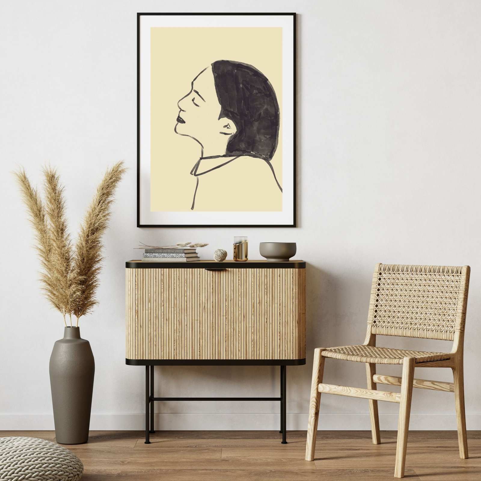 This minimalist poster features the elegant side profile of a woman, drawn with simple black lines on a warm beige background. The subtle design evokes tranquility and grace, perfect for bedrooms, living rooms, or spaces that embrace modern, sophisticated art.