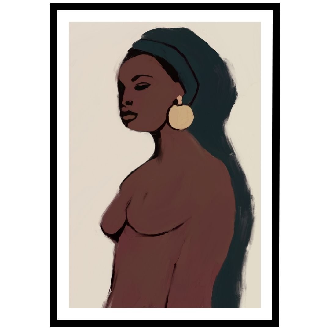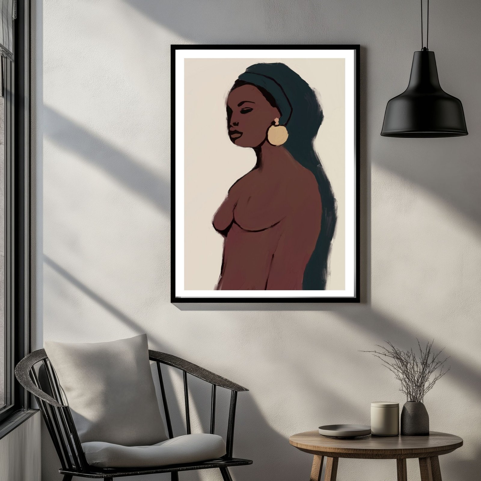 This striking portrait of a woman with a headscarf exudes elegance and grace. The soft colour palette and bold composition make it an eye-catching piece, perfect for creating a sophisticated atmosphere in your home or office.