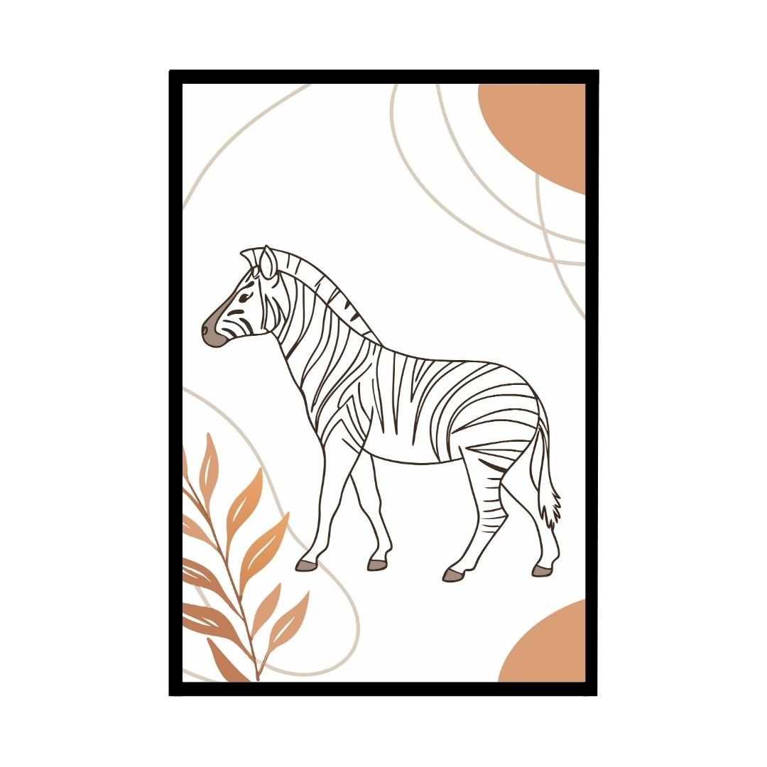 Sop our zebra minimalist line art prints Bring a touch of striking simplicity to your decor. Featuring clean, flowing lines and a minimalist style. It beautifully captures the zebra’s unique charm perfect for boho, modern, or safari-inspired interiors.